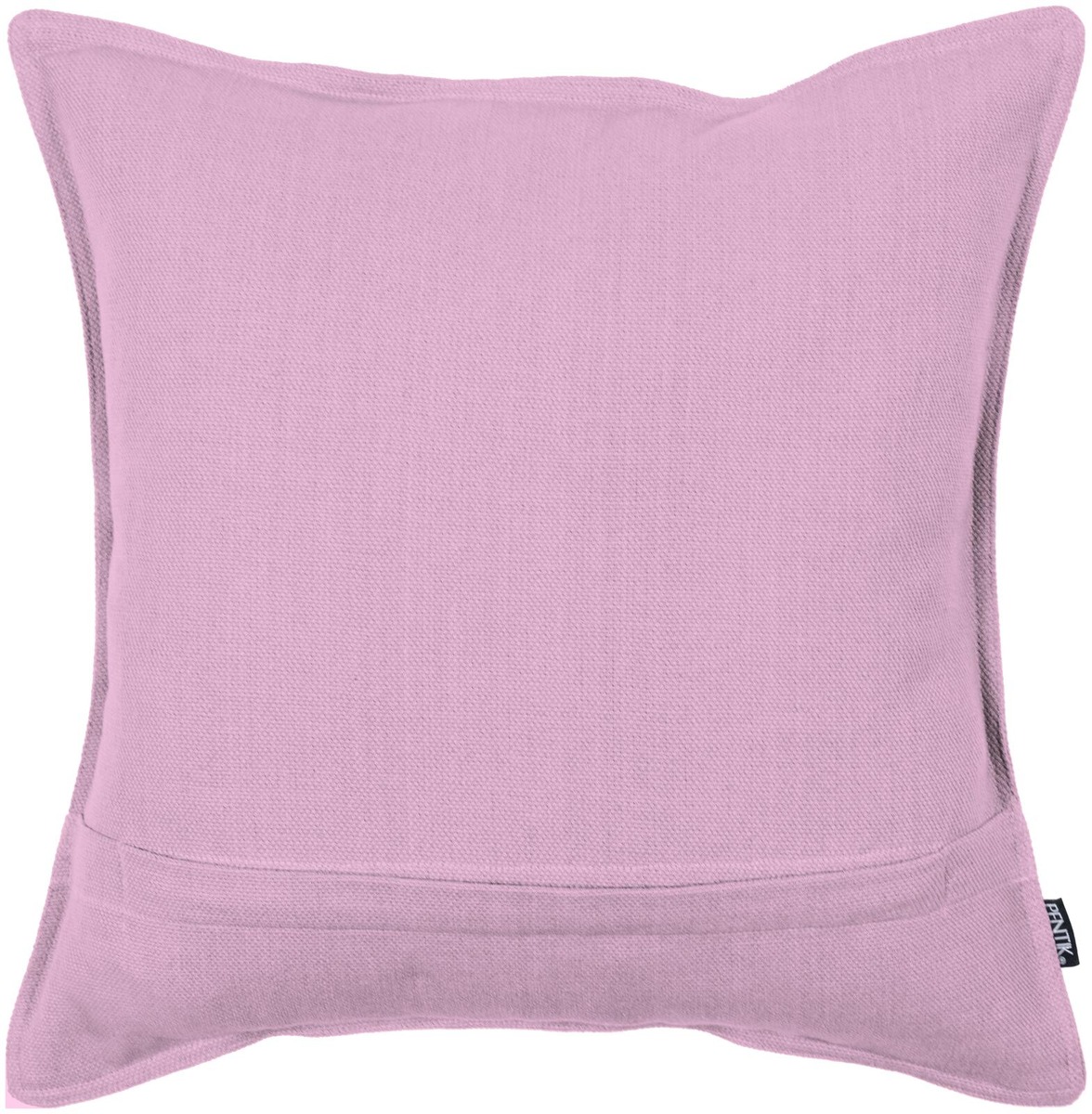 Vaaleanpunainen yksivärinen tyynynpäällinen on mitoiltaan 45x45 cm, joten siihen sopii 48x48 cm kokoinen sisätyyny, joka saa tyynyn näyttämään muhkealta. 100 % puuvillaa.