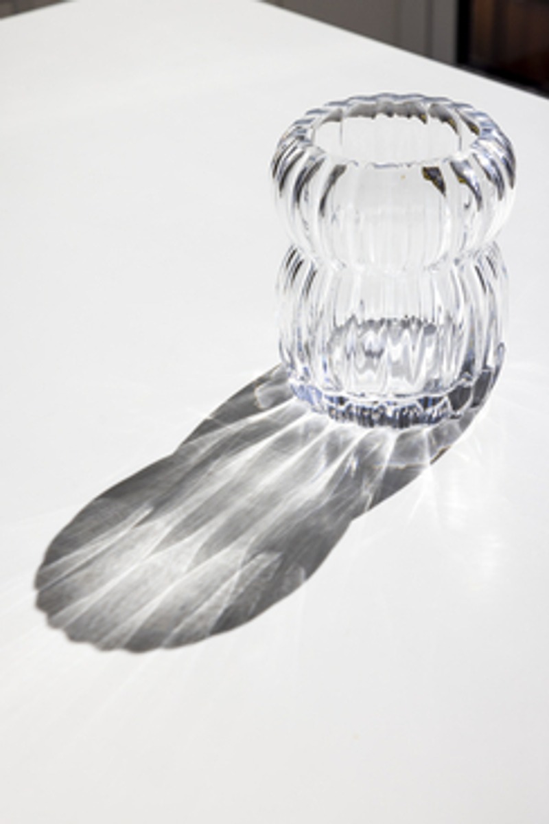 Auringossa huojuvat viljapellot ovat pohjoisen hypnoottinen näky. Niistä suunnittelija Minna Niskakangas sai alkujaan inspiraationsa, ja graafinen kuosi piirtyi luonnoskirjaan. Kirkas Vilja-kynttilälasi on kooltaan 7,5x7 cm.