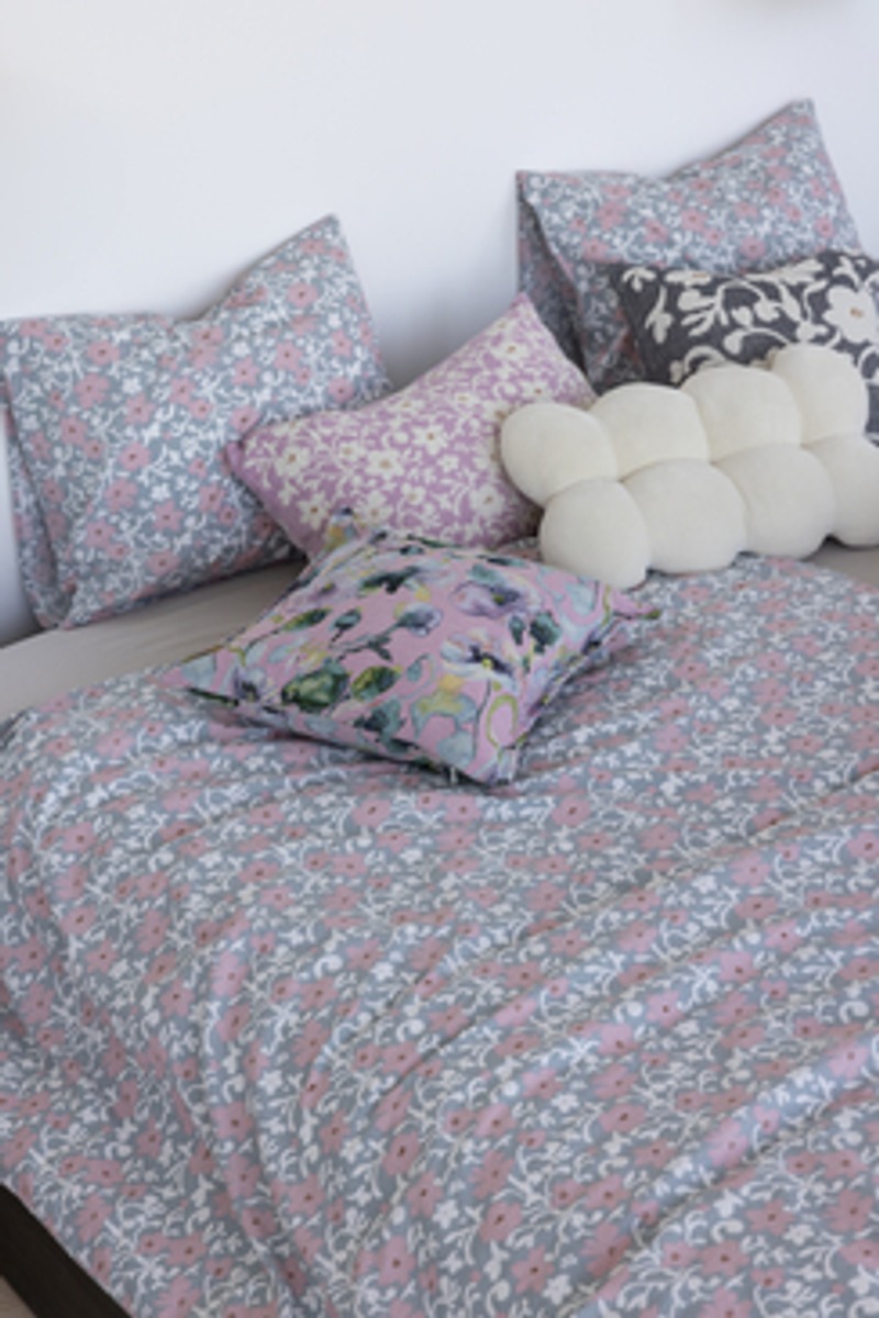 Ruusumalva-malliston kukkakuvioinen pussilakana on kooltaan 150x210 cm ja tyynyliinan koko on 50x60 cm. Valmistettu 70 % puuvillasta 30 % pellavasta.