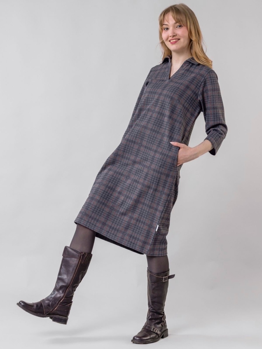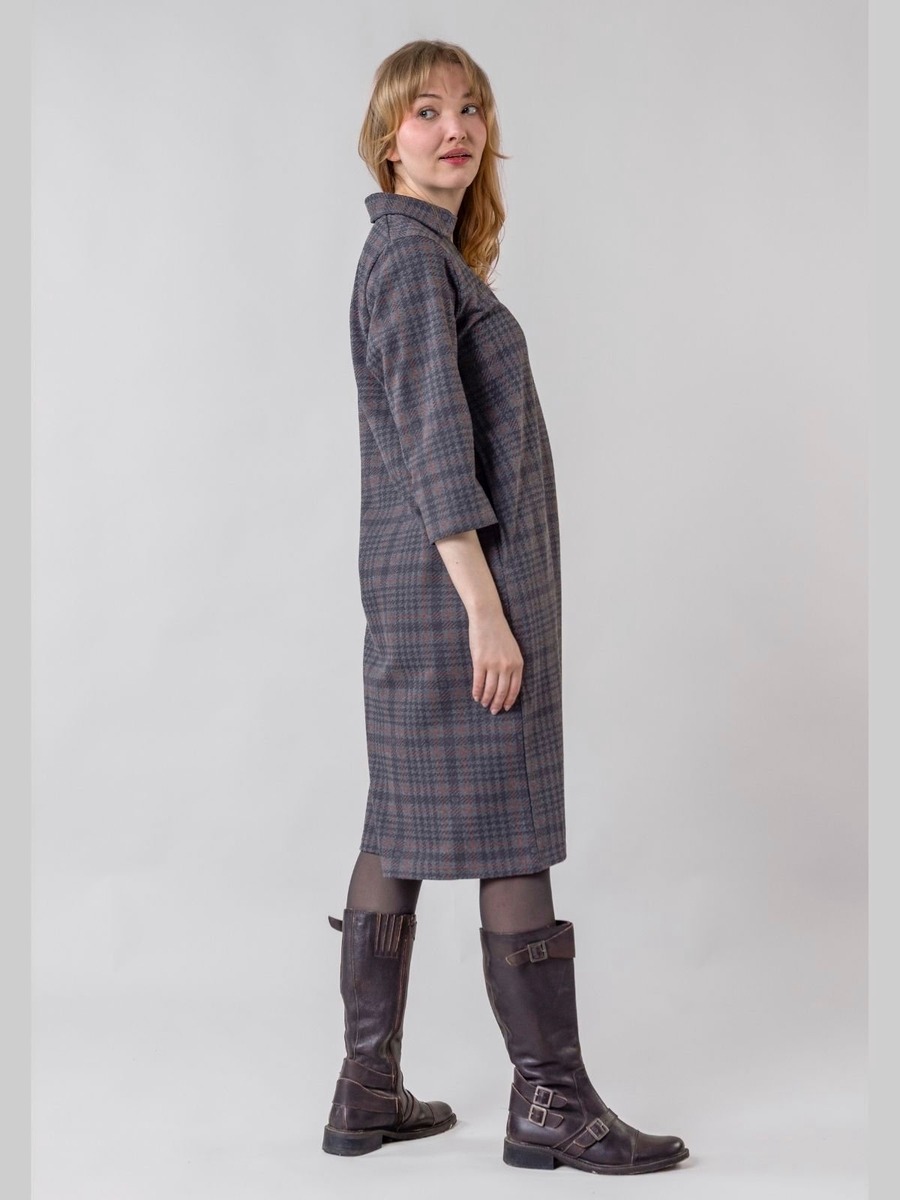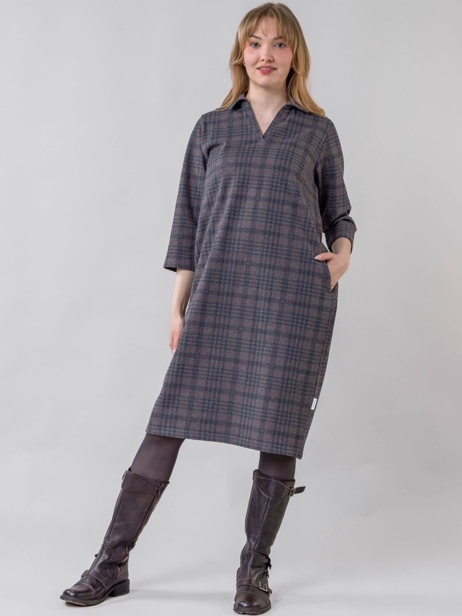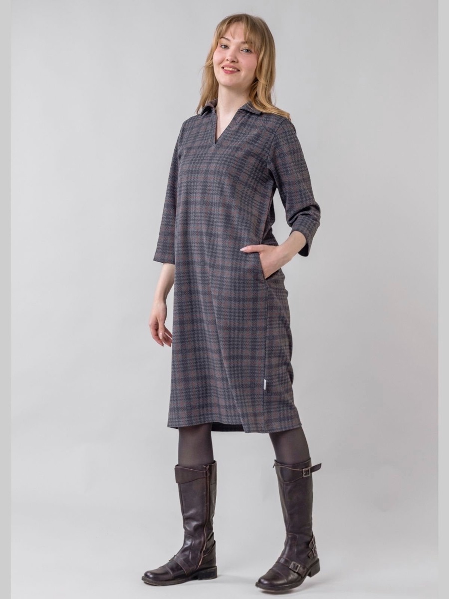 Mekko yhdistää mukavuuden, vastuullisuuden ja käytännöllisen muotoilun. Kokonaan painettu kuosi ja samaa kangasta oleva kaulus luovat yhtenäisen ja harkitun ilmeen. V-pääntie ja 3/4-hihat tuovat malliin keveyttä ja imartelevuutta, tehden mekosta täydellisen valinnan niin arkeen kuin rennompiin juhlatilaisuuksiin. Kaulukset luo mekkoon rentoa ryhdikkyyttä.