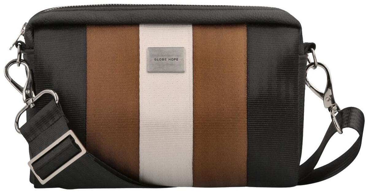 Kestävä ja uniikki: Valmistettu turvavöistä ja ylijäämänahasta, jotka tekevät jokaisesta laukusta yksilöllisen.