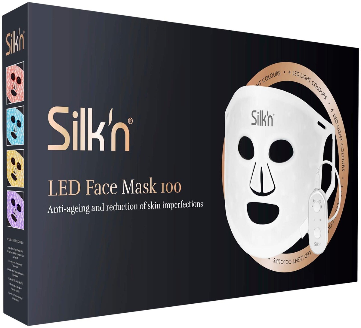 Paranna ihoa Silk'n 100 LED-valoterapialla. Anna ihollesi tehohoitoa LED-valon avulla! Silk’n LED Face Mask 100 on ihonhoitoteknologian viimeisin innovaatio, joka hoitaa ihoa punaisella, sinisellä, keltaisella ja violetilla LED-valolla, ehkäisten ikääntymisen, aknen ja kuivuuden merkkejä. Vähentää juonteita ja ryppyjä, kiihdyttää verenkiertoa ja parantaa ihon rakennetta sekä rauhoittaa ja hoitaa ihoa.Silk’n LED Face Mask 100 hyödyntää LED-valoterapiaa, joka kehitettiin alunperin haavojen paranemisen nopeuttamiseksi. Nykypäivänä valoterapiaa käytetään yhä enemmän ihonhoidossa ja tutkimukset osoittavat LED-valon stimuloivan solujakautumista sekä uusien solujen tuotantoa ja tukevan kudosten paranemista. Siksi monet ihoklinikat ympäri maailman käyttävät hoidoissaan LED-valoa esimerkiksi ikääntymisen merkkien hoitoon. Voit nyt tehdä saman omassa kodissasi Silk’n LED Face Mask 100 ansiosta