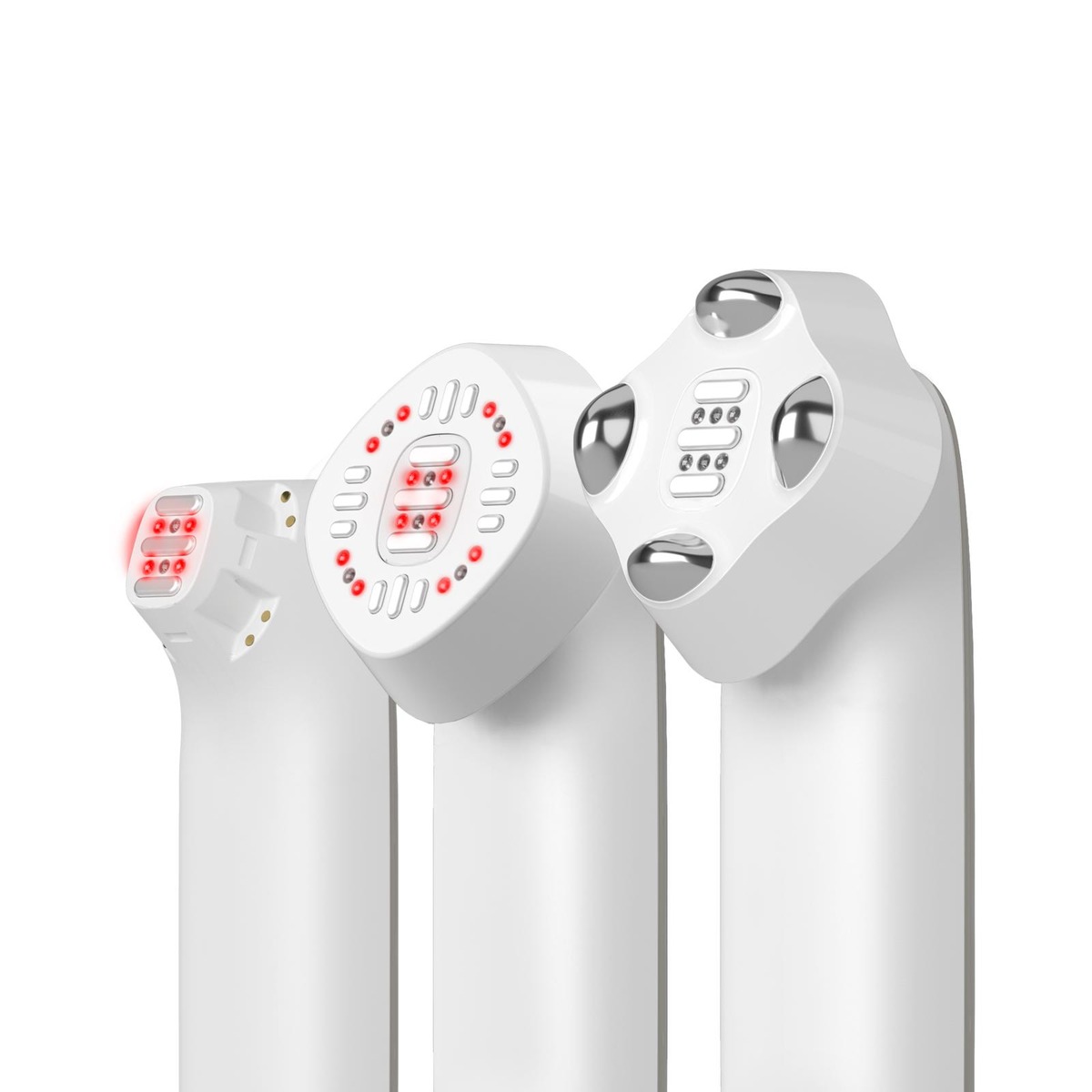 Useita lisäosia laajemmille alueille Silk'n FaceTite MultiPlatform tarjoaa useita lisälaitteita, joilla kullakin on oma erikoisuutensa. Itse laitteessa on pienempi hoitopinta, jolla voidaan käsitellä vaikeasti saavutettavia kasvojen alueita, kuten silmien ja suun ympärillä olevia alueita. Se sisältää myös suuremman bipolaarisen radiotaajuusliitännän (RF) ja sähköisen lihasstimulaatioliitännän (EMS). Lisäosien suuremman pinta-alan ansiosta kasvojen ja kaulan alueen suurempia alueita on helpompi hoitaa ennätysajassa. Valitse haluamasi tekniikka vaihtamalla helposti lisälaitteiden välillä.