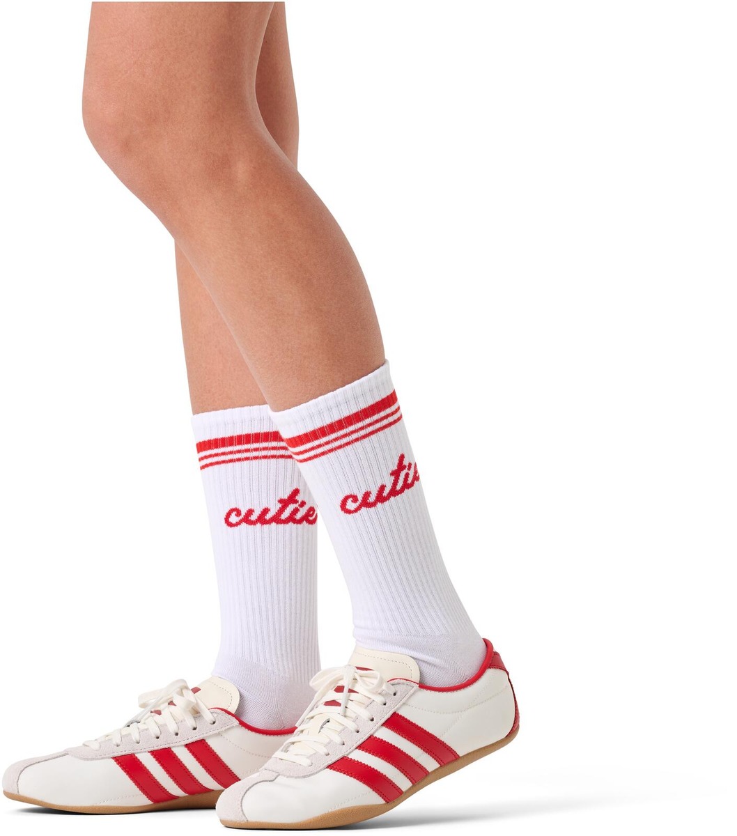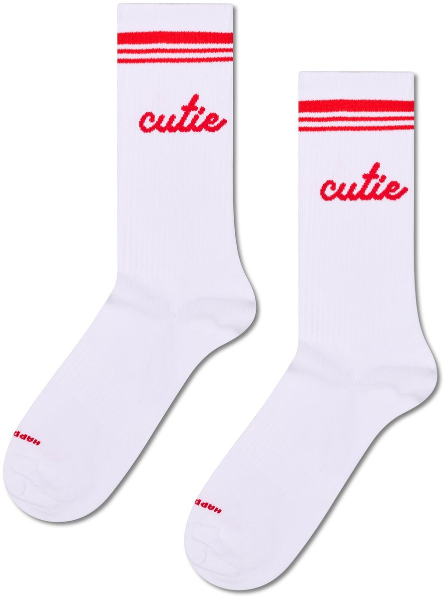 Lisää ripaus persoonallisuutta tyyliisi Happy Socks Cutie Sneaker -sukilla! Tämä hauska ja leikkisä design sisältää suloisen tekstin ”cutie” varren kohdalla, tuoden leikkisyyttä matkaasi olitpa sitten salilla tai hoitamassa arjen askareita - nämä hauskat sukat tuovat varmasti hymyn kasvoillesi.