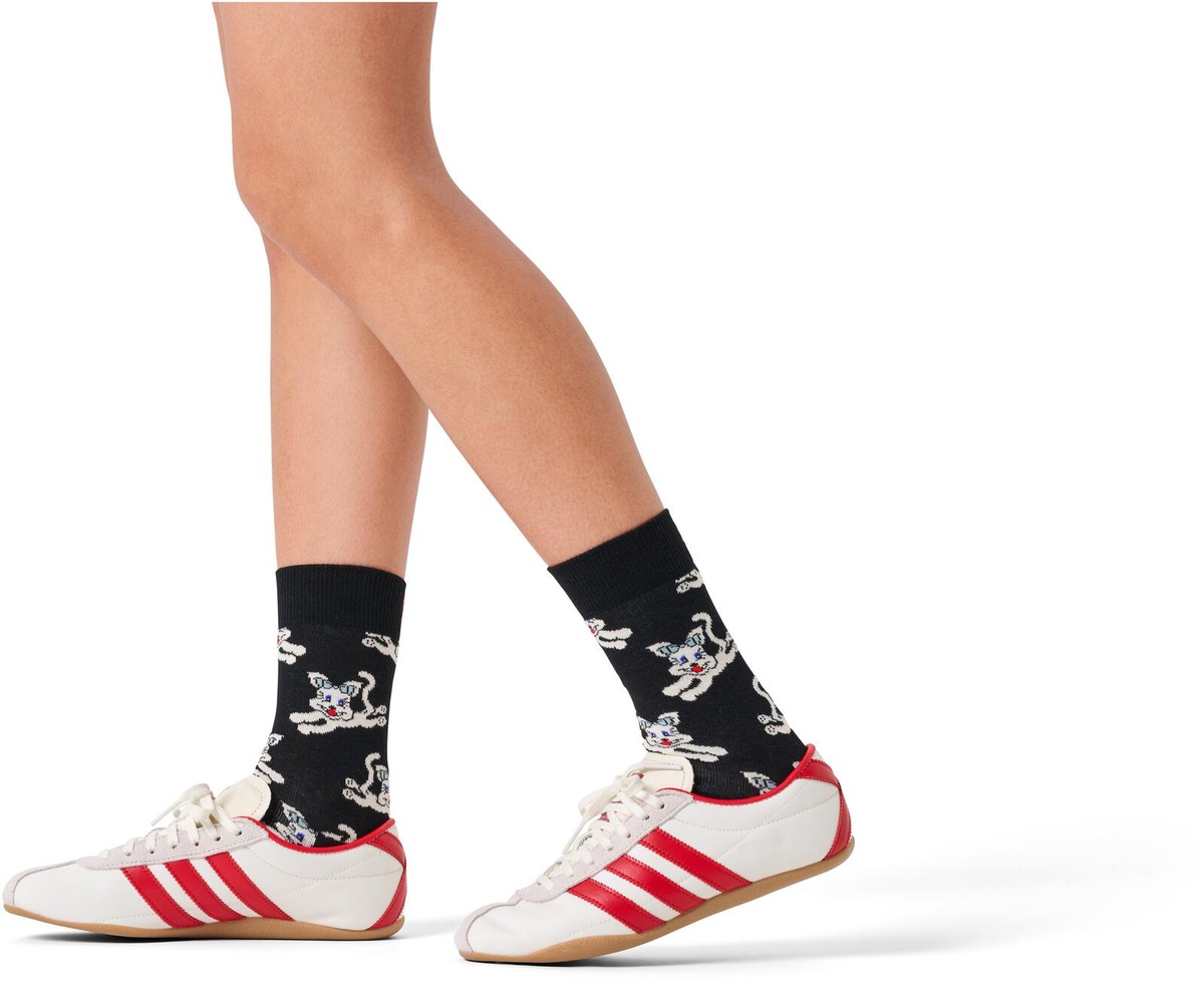 Happy Cat -sukat – iloisia kissoja jaloillesi! Happy Socks mallin toistuva kissakuosi tuo hymyn huulille ja ripauksen leikkisyyttä asuusi. Täydellinen kaikille kissafaneille ja persoonallisia kuoseja rakastaville.