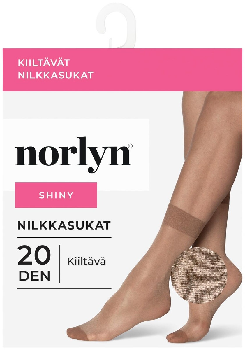 Erittäin kiiltävät 20 denierin nilkkasukat. Nämä ohuet ja liukaspintaiset sukat tuovat säihkettä jalkoihin. Kärkivahvike parantaa kestävyyttä. Leveä resori auttaa sukkia pysymään paikoillaan.
