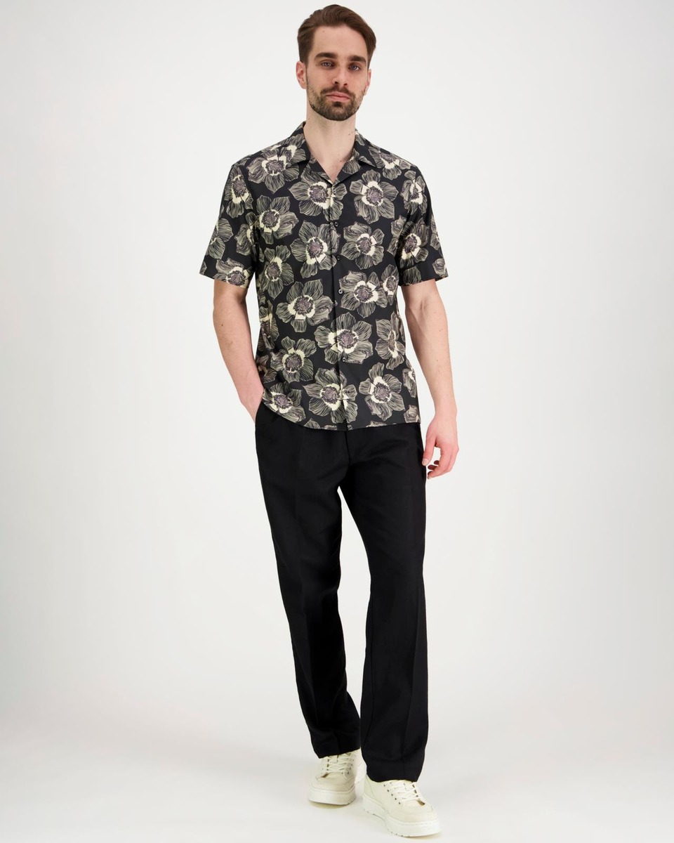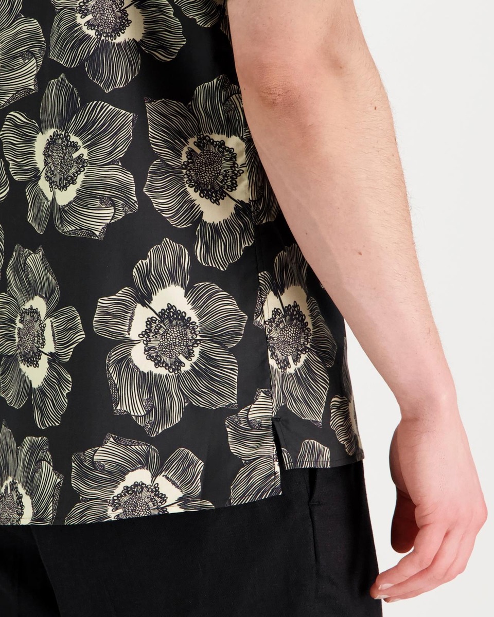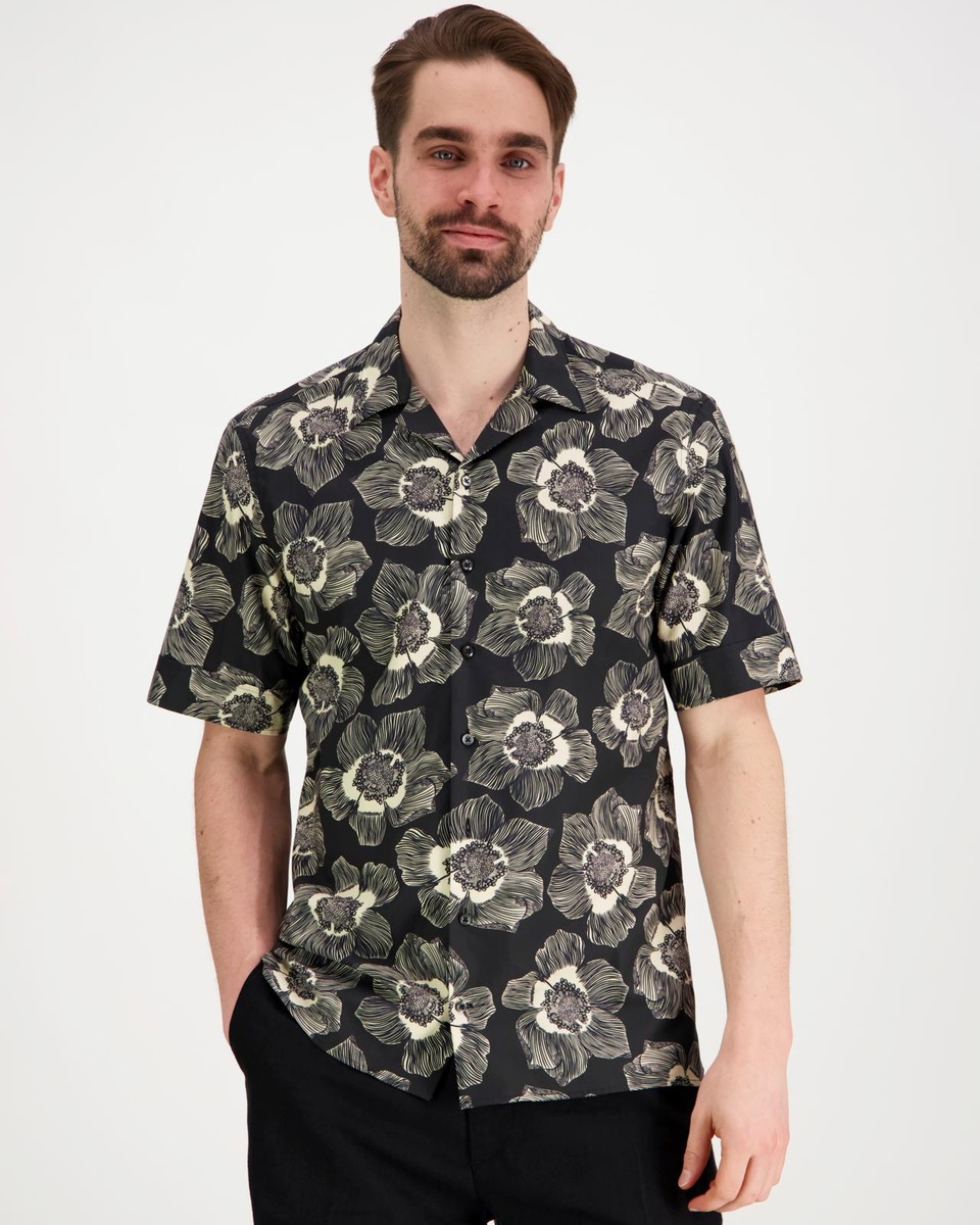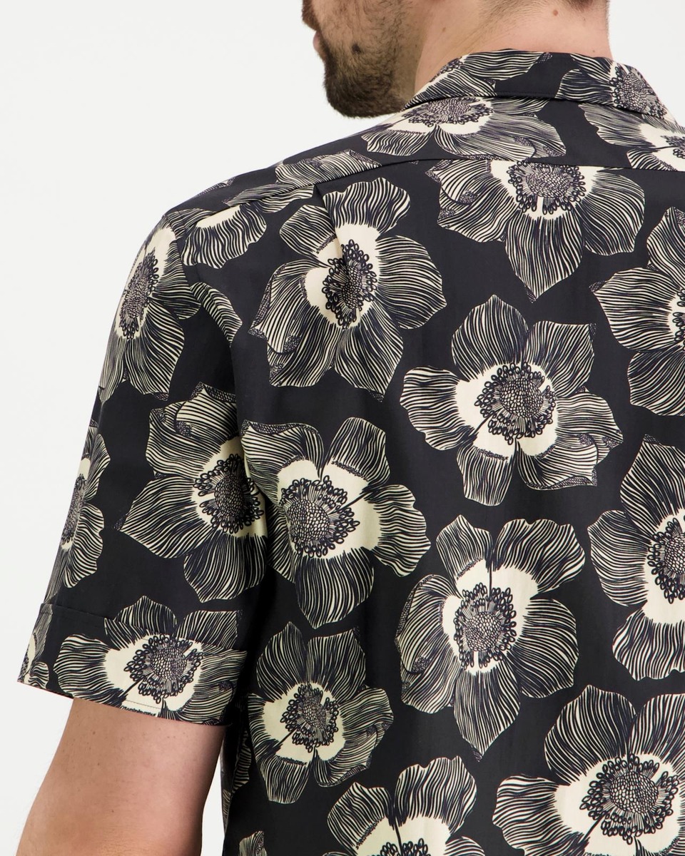 Lyhythihainen kauluspaita näyttävällä kukkakuosilla. Paidassa on aidot helmiäisnapit. Regular fit.