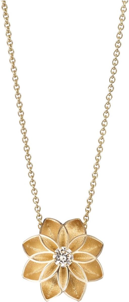 Hurma-riipus keltakultaisena ja timantilla on täydellinen valinta juhlaan tai romanttiseksi lahjaksi. Korun herkkä muoto ja säihkyvä jalokivi tuovat luksusta jokaiseen hetkeen. Korun koko on 14x14 mm ja ketjun pituus 50 cm, saatavilla myös 45 cm. Timantin koko on 0,15ct. Valmistettu Suomessa 100% kierrätetystä 14K kullasta. Toimitetaan kauniissa lahjapakkauksessa.