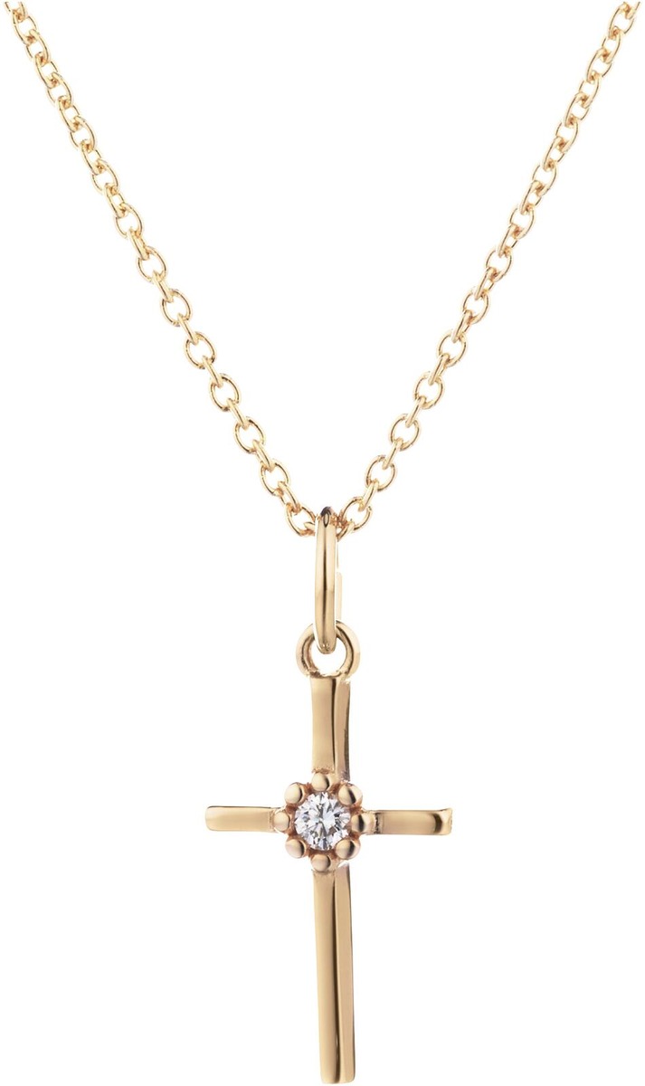 Daisy-risti keltakultaisena on merkityksellinen koru, jota koristaa kirkas 0,03ct w/si timantti. Sopii rippilahjaksi, kummilahjaksi tai henkilökohtaiseksi symboliksi, ketjun pituus 45cm, saatavilla myös 50cm. Pieni ja siro muoto tekee siitä elegantin lisän arkeen ja juhlaan. Valmistettu Suomessa 100% kierrätetystä 14K kullasta, toimitetaan kauniissa lahjapakkauksessa.
