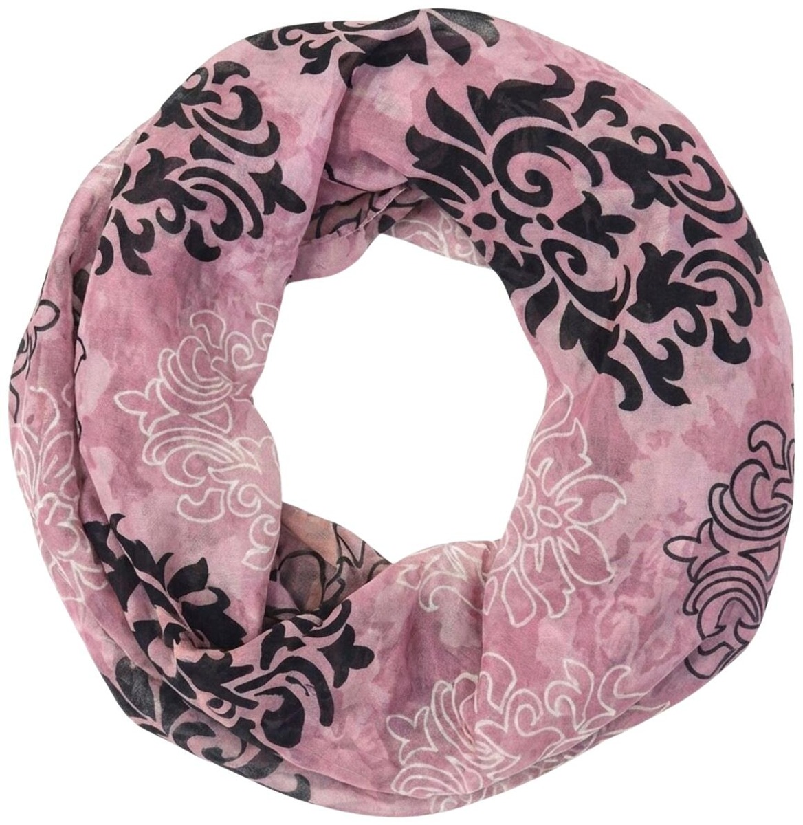 Kevyt, helppokäyttöinen silkkituubihuivi, klassinen monisävyinen ornamentti-printti.