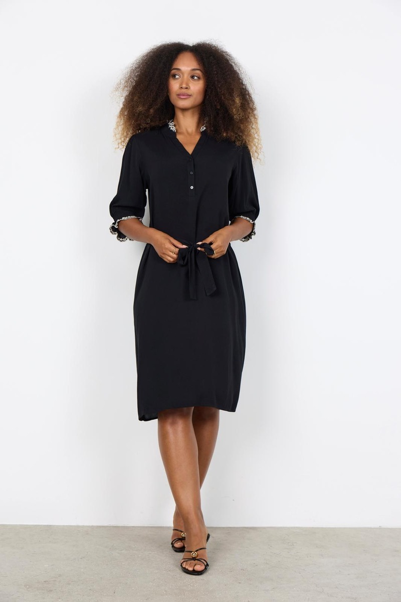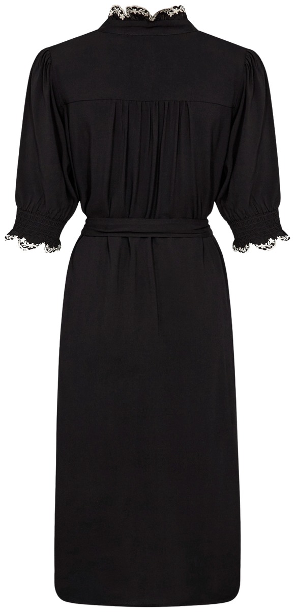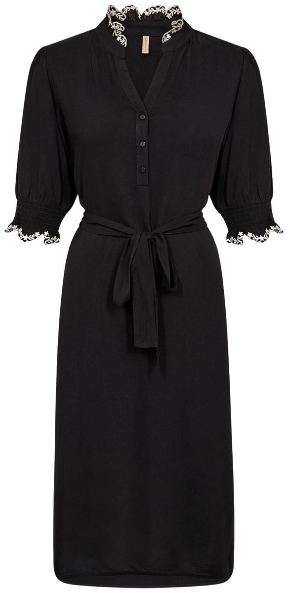 Sc-radia 231 on kaunis mekko, joka on valmistettu 100 % lenzing™ ecovero™ -viskoosista – vastuullinen ja pehmeä materiaali, joka laskeutuu kauniisti. mekossa on tyylikäs korkea kaulus pitsiyksityiskohdilla, puolipitkät hihat ja nappikiinnitys edessä. vyötäröllä oleva solmittava nauha korostaa naisellista siluettia ja tuo asuun viimeistellyn ilmeen.