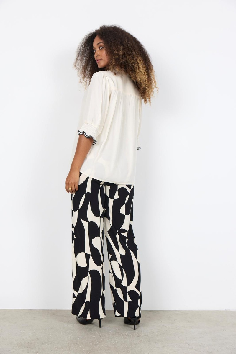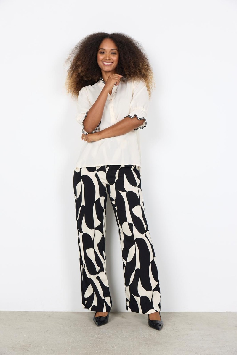 Sc-radia 228 on tyylikäs pusero, joka on valmistettu 100 % lenzing™ ecovero™ -viskoosista – vastuullinen valinta, joka tuntuu pehmeältä ja laskeutuu kauniisti. puserossa on näyttävä röyhelökaulus, jota koristaa hienostunut kirjailu, sekä puolipitkät hihat yksityiskohtaisella nappikiinnityksellä.