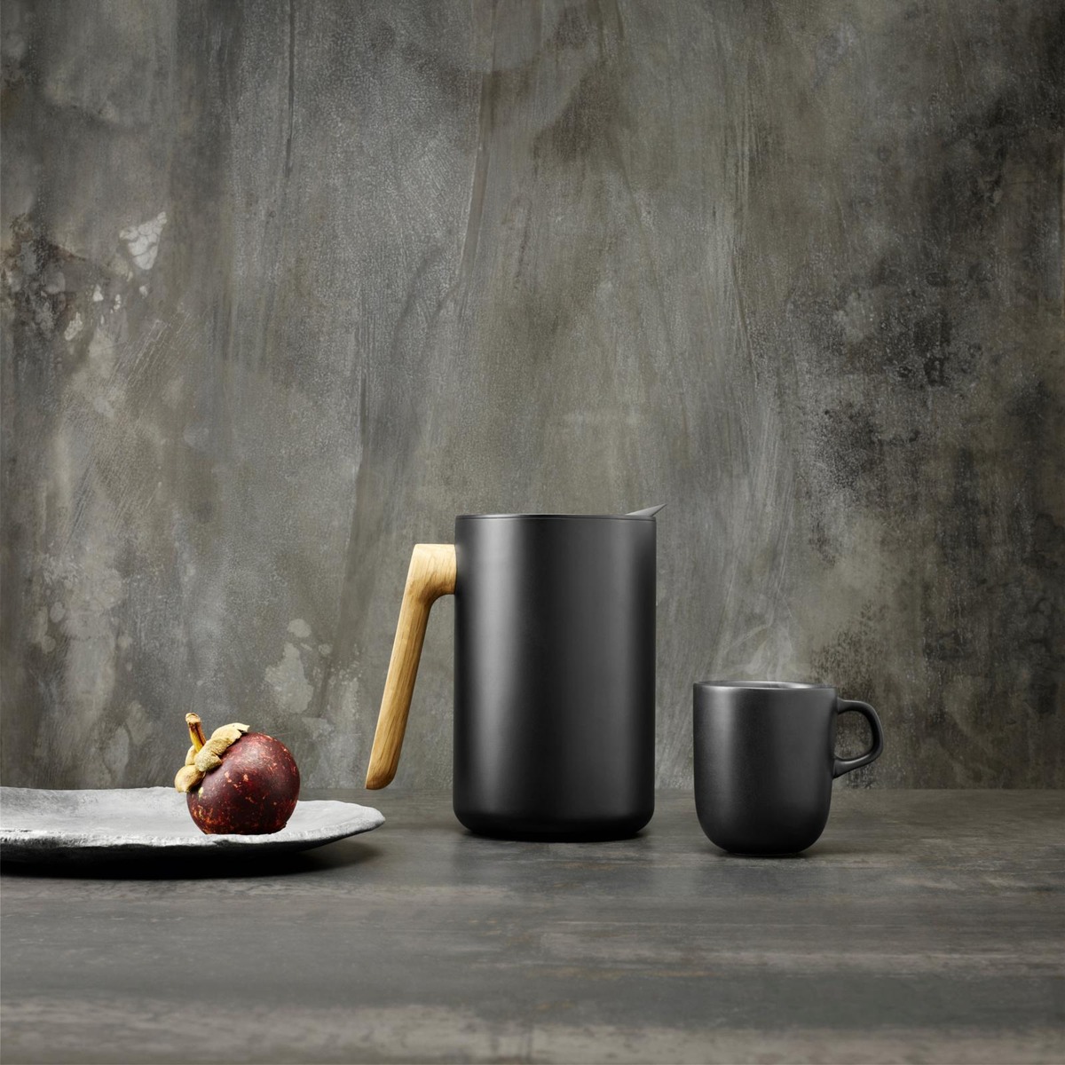 Mattapintainen ja tammikahvainen Nordic Kitchen -termoskaadin on kattauksen ehdoton helmi! Kannussa on ruostumattomasta teräksestä valmistettu, erittäin kestävä sisus ja kaatonokka, joka on Eva Solon tapaan 100 % tipaton. Tilavuus 1 l, suositellaan käsinpesua.