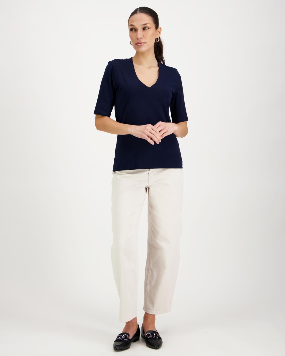 V-päänteinen trikoopusero. Pehmeä ja miellyttävä materiaali