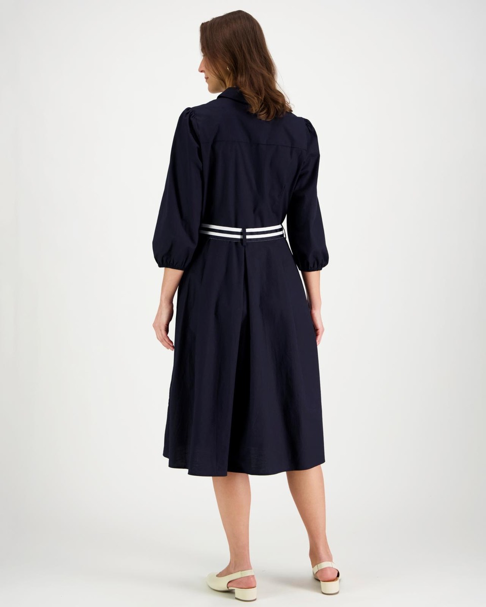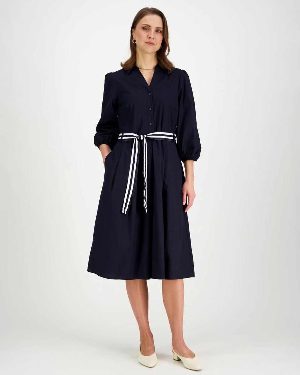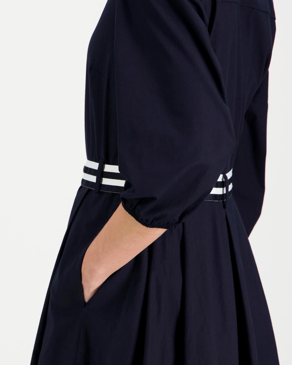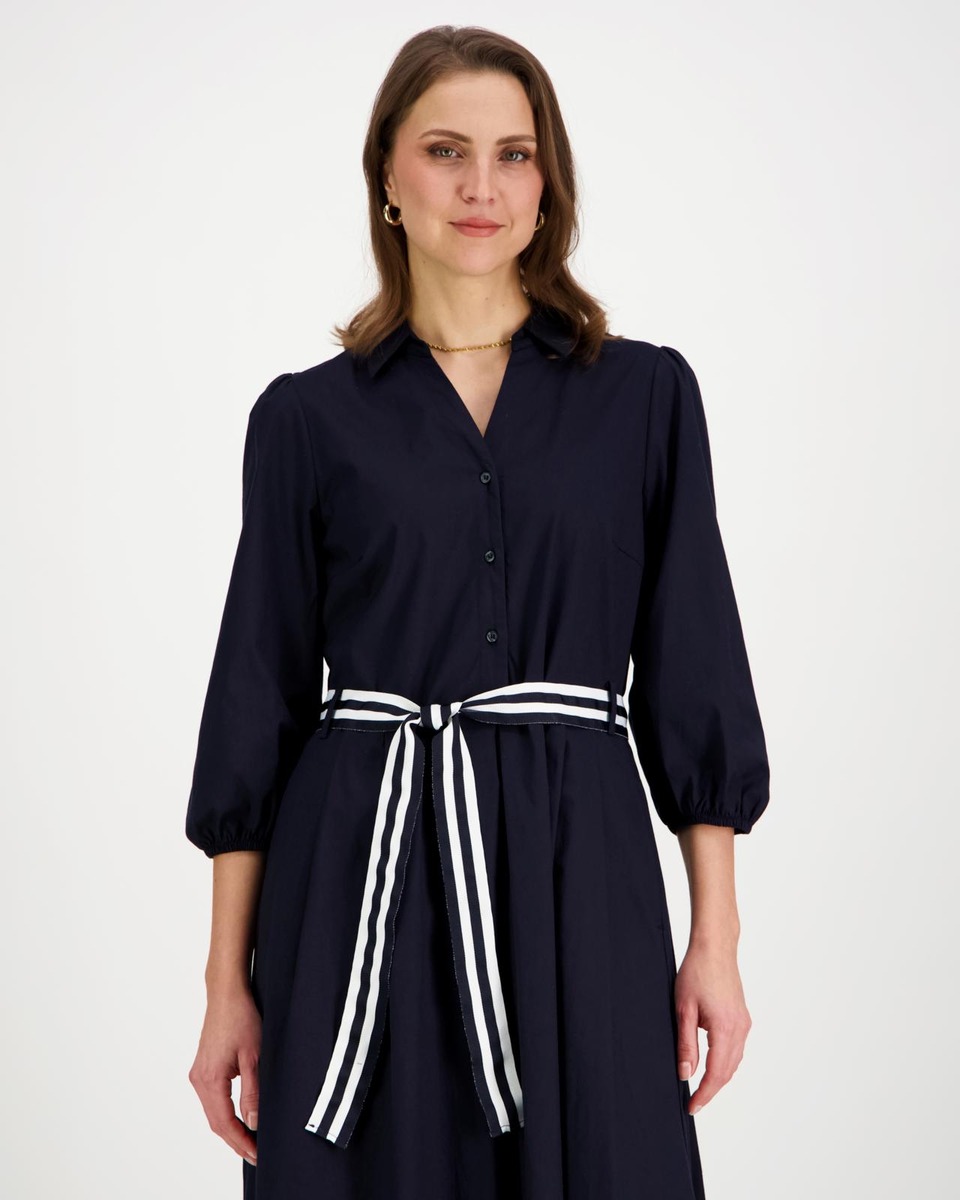 Klassinen popliinimekko jossa irroitettava vyö sekä leveä helma. Mekosta löytyy myös kätevät sivutaskut.