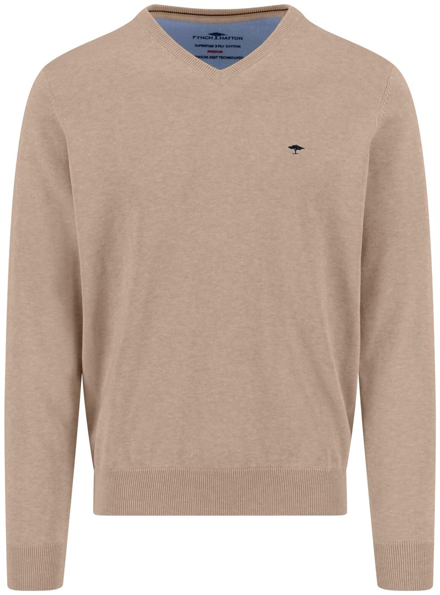 Miesten laadukas Fynch-Hatton neule V-pääntiellä. Neule on valmistettu 3-ply Superfine puuvillasta, mikä tarkoittaa erityisen hienoa ja pehmeää puuvillaa kolminkertaisella kierrejänteellä. Rinnassa logo brodeeraus.
