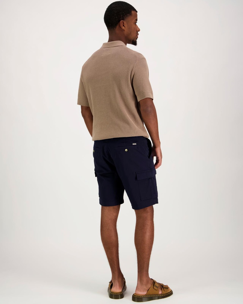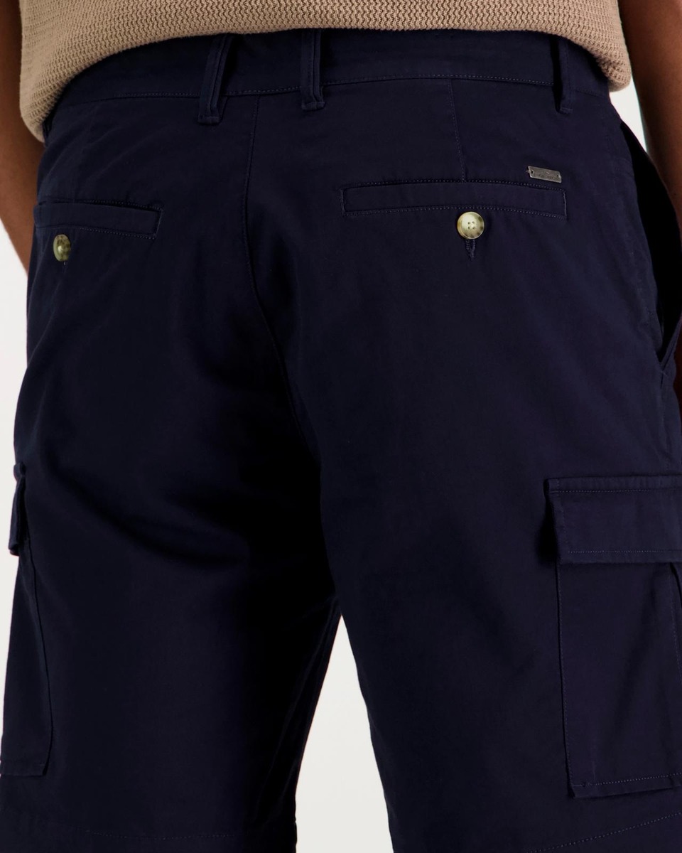 Cargoshortsit, joissa reisitaskut molemmissa lahkeissa. Materiaalina joustava puuvilla-elastaani. Nämä tuotepestyt shortsit sopivat hyvin kesäisen rentoon tunnelmaan.