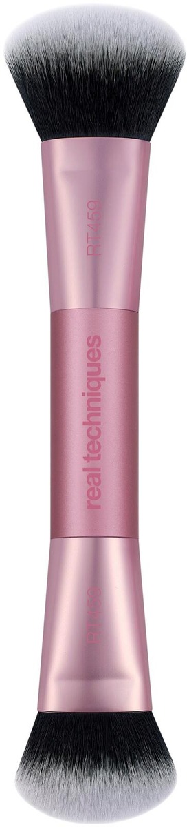 UltraPlush®-synteettisillä harjaksilla valmistettu kaksipäinen sivellin on pehmeä ja hellävarainen myös herkälle iholle. Kuten kaikki Real Techniques -meikkivälineet, se on 100 % vegaaninen ja eläinkokeeton.