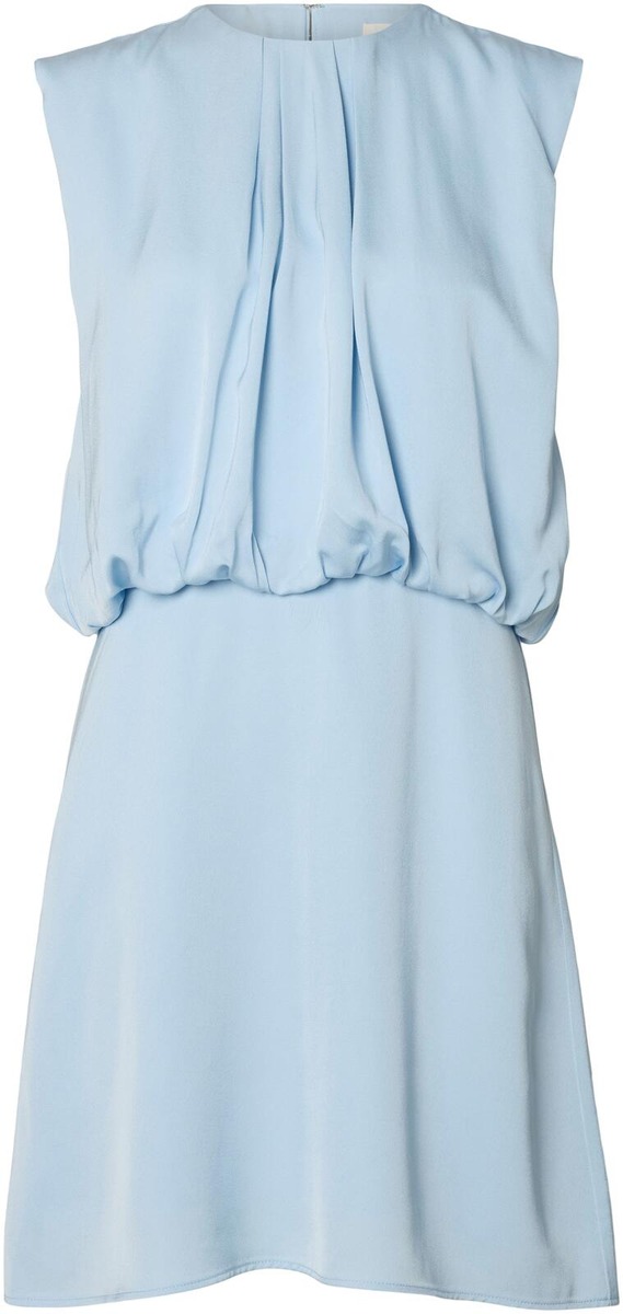 Tämä tyylikäs mekko on täydellinen valinta jokaiselle pukeutumistilanteelle. Pyöreä kaula-aukko ja hihaton muotoilu tuovat esiin klassisen eleganssin, kun taas piilotettu vetoketju takana varmistaa siistin ilmeen. Mekon lyhyt pituus ja regular fit takaavat mukavan istuvuuden. Viskoosivuori lisää pehmeyttä ja ehkäisee staattisuutta, joten voit tuntea olosi mukavaksi koko päivän. Tämä mekko korostaa tyylikkyyttäsi ja sopii täydellisesti niin arkeen kuin juhlaan!
