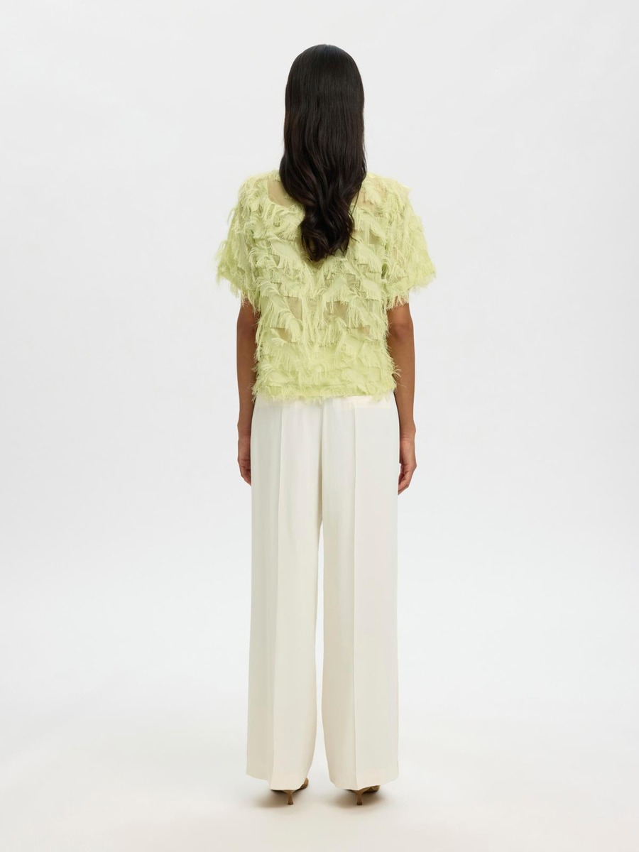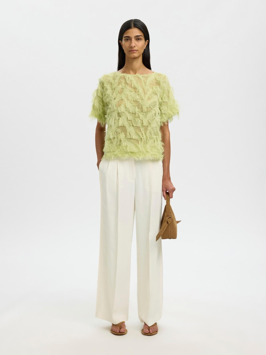 Tämä upea pusero tuo vaatekaappiisi ripauksen eleganssia ja mukavuutta. Tyylikäs venepääntie korostaa kauniisti kaulaa, ja lyhyet hihat tekevät siitä täydellisen valinnan lämpimiin päiviin. Rentoon istuvuuteen on lisätty viehättäviä hapsuja, jotka tuovat asuusi leikkisyyttä ja liikettä. Täydellinen valinta, kun haluat näyttää muodikkaalta ja tuntea olosi mukavaksi!