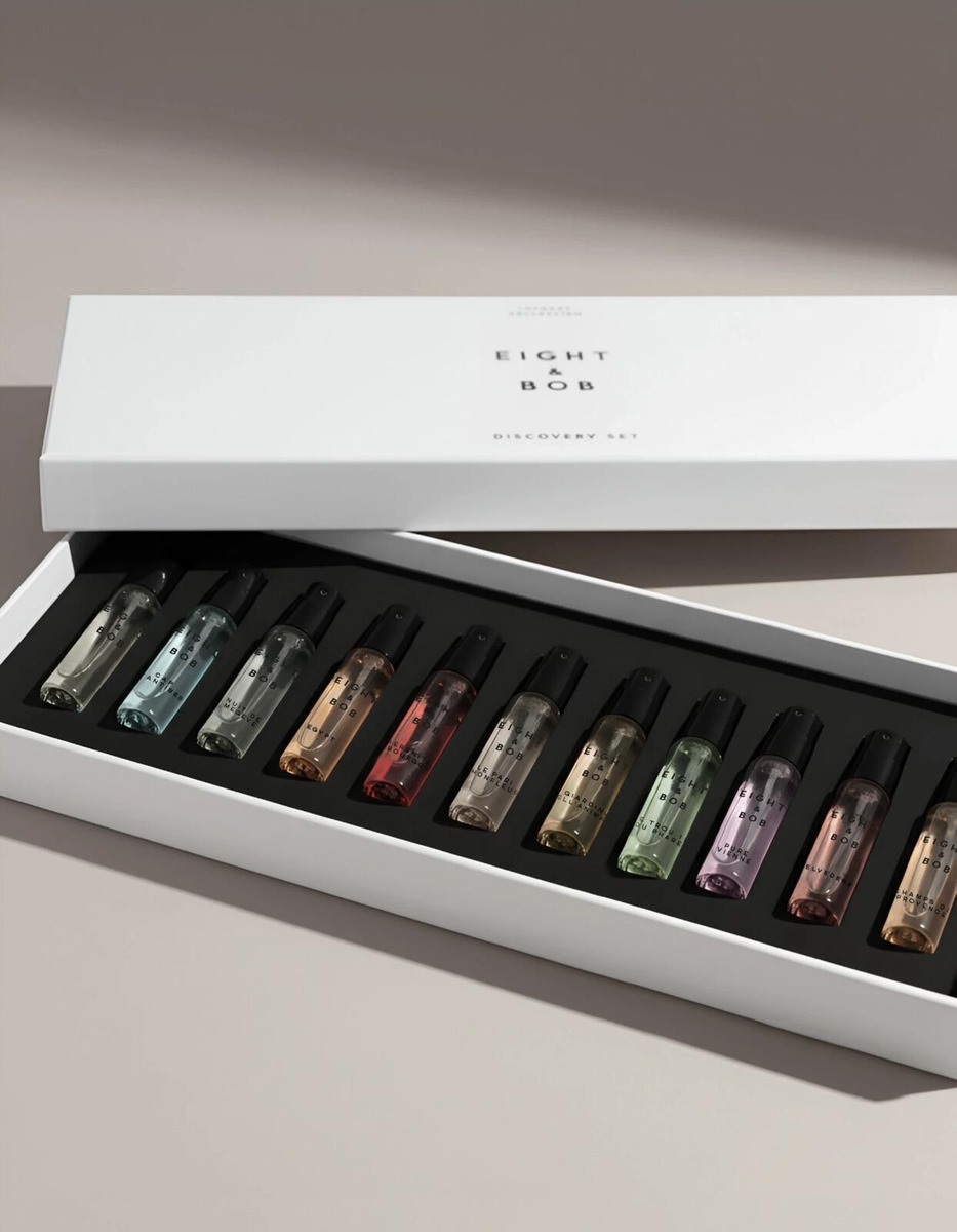 Huomioithan: Ilmaisia näytteitä ei toimiteta erikseen. Discovery Set sisältää koko Fouquet Collection -valikoiman, tarjoten upean johdatuksen Eight & Bobin maailmaan. Jokainen pullo kutsuu sinut hienostuneelle hajustomatkalle — elegantille tutkimusmatkalle niille, jotka arvostavat hajuvesitaidetta.