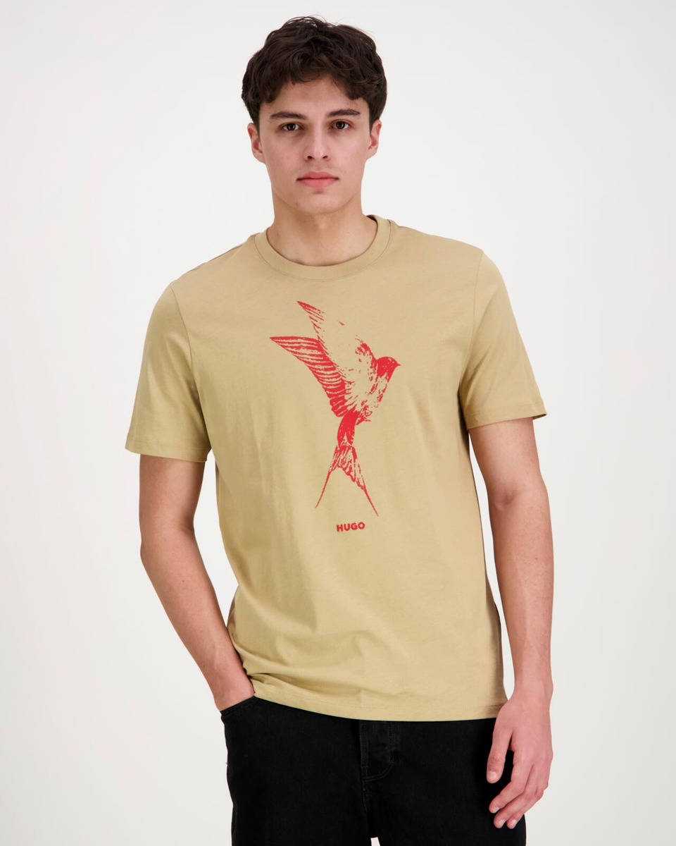 HUGO miesten t-paita on täydellinen lisä vaatekaappiin niille, jotka arvostavat tyylikkyyttä ja mukavuutta. T-paita erottuu edukseen lintuprintillä, joka sijaitsee rinnan kohdalla, tuoden siihen ripauksen persoonallisuutta. Regular fit -muotoilu tarjoaa miellyttävän istuvuuden, joka sopii monenlaisille vartalotyypeille. Tämä t-paita on helppo yhdistää erilaisiin asukokonaisuuksiin, olipa kyseessä rento viikonloppuasu tai tyylikäs iltalook. HUGO t-paita on loistava valinta muotitietoiselle miehelle, joka haluaa erottua joukosta.