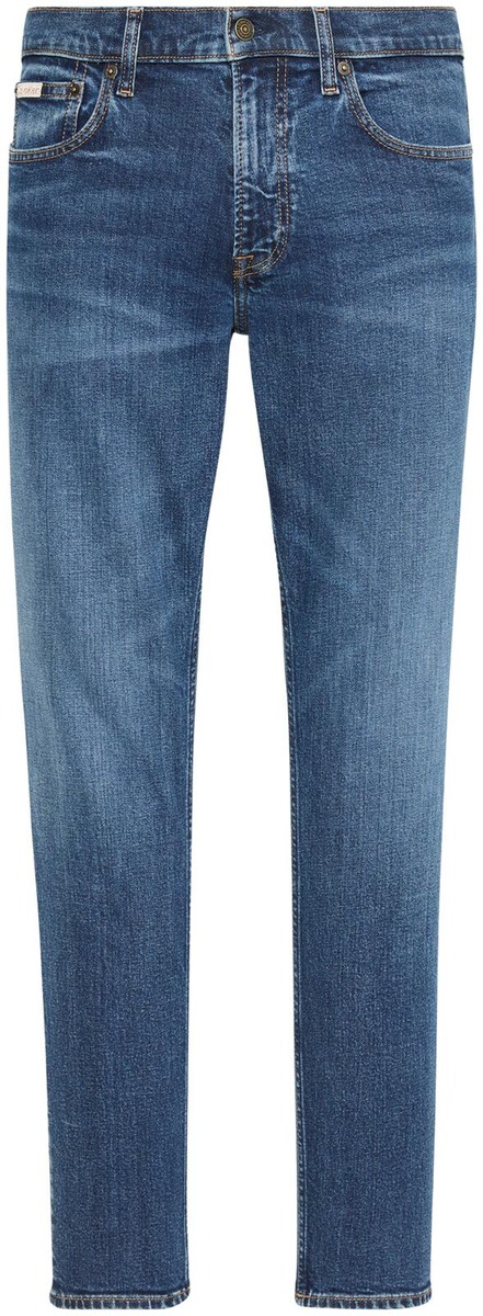 Miesten farkut, joissa on medium rise -vyötärö ja kapeneva lahje, joka päättyy kapeaan suuaukkoon. Valmistettu mukavasta stretch-denimistä, sisältää 20 % kierrätettyä puuvillaa. Viisi taskua, vetoketjusepalus ja puhdas musta pesu. Viimeistelty Calvin Klein -metalliosilla ja nahkamerkillä.