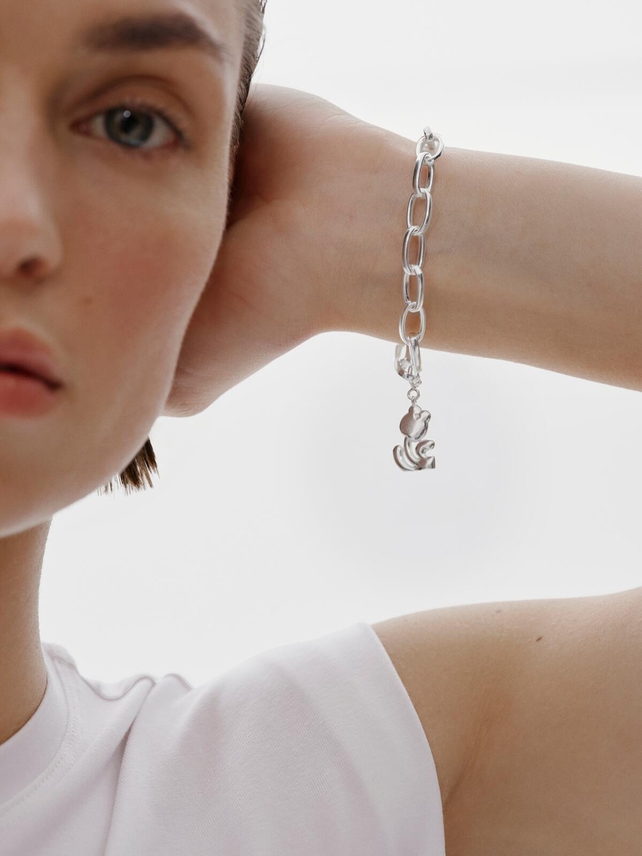 Leikkisä Vinkkeli-kuvio kantaa muistikuvia suunnittelijan isovanhempien kesämökin tunnelmasta. Kuosi rakentuu neljästä identtisestä kukasta, jotka on aseteltu eri suuntiin. Eija Vehviläinen nauttii toiston ja peilikuvien kanssa työskentelystä – luova haaste piilee siinä, miten säilyttää visuaalinen mielenkiinto vain muutamia muotoja käyttäen. Helan leveys 13 mm, korkeus lukkoineen 32 mm.