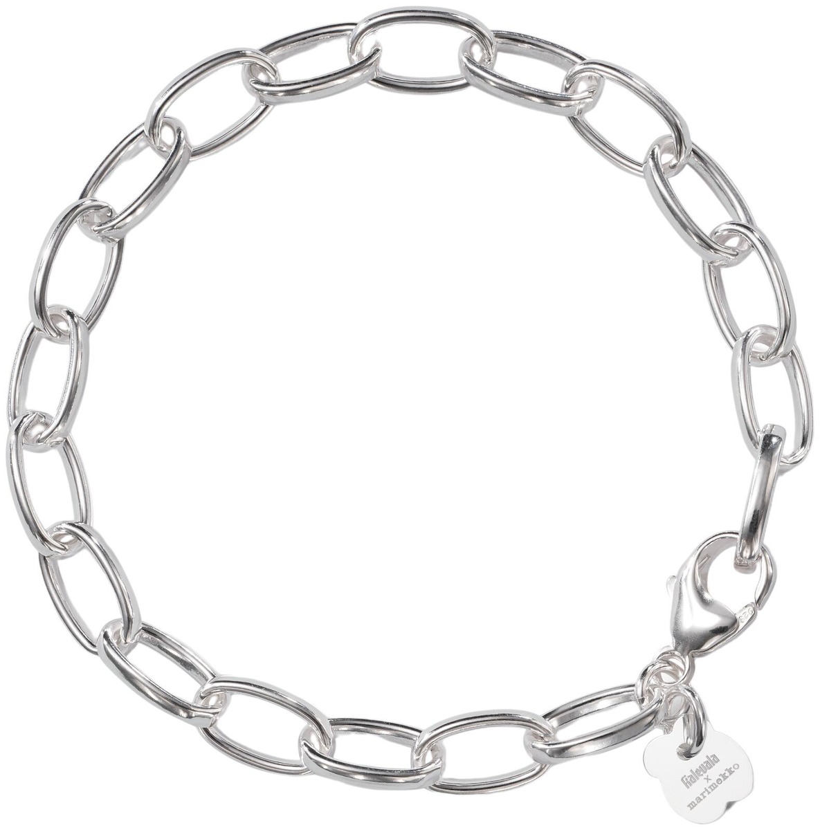 Rannekorun pituus on 19 cm, lisäksi ketjun voi lukita lyhyemmäksi haluttuun pituuteen noin sentin porrastuksella. Kalevala x Marimekko Garden -helat ripustetaan ketjun lenkkeihin heloihin kiinnitetyllä jousirengaslukolla. Helojen paikkaa on helppo vaihdella. Rannekoru on tyylikäs myös sellaisenaan, ja se sopii niin naisille kuin miehillekin.