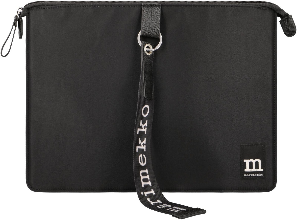 Sleeve 13” -suojatasku on valmistettu kierrätetystä polyamidista. Pehmustettuun suojataskuun mahtuu 13-tuumainen kannettava tietokone. Suojataskussa on vetoketjusuljenta, yksi avoin sisätasku ja Marimekko-tuotemerkkilappu etupuolella. Tuotteessa on nahkaisia yksityiskohtia.