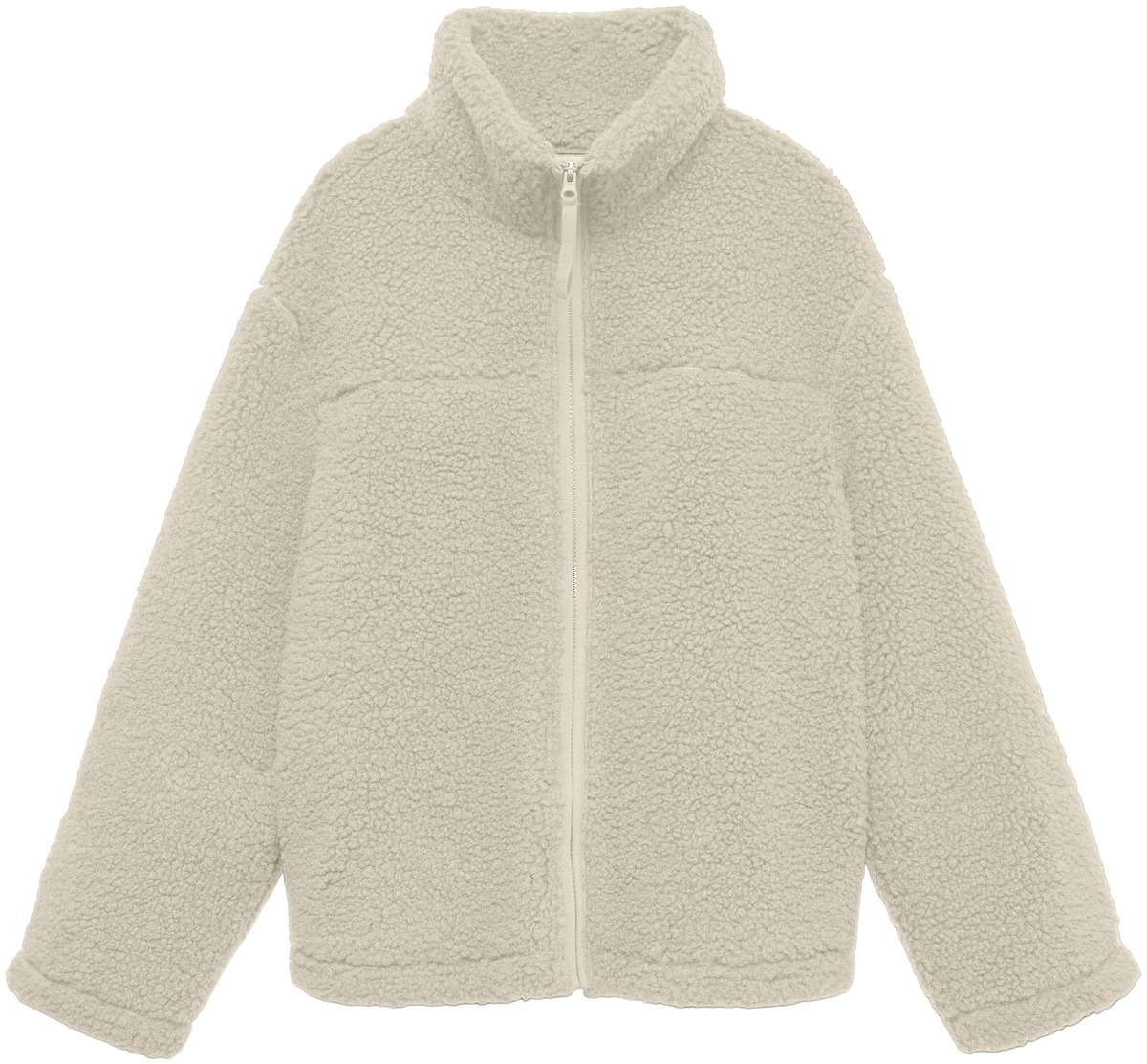 Trendikäs lyhyt teddytakki, jossa korkea kaulus ja edessä vetoketju sekä taskut.