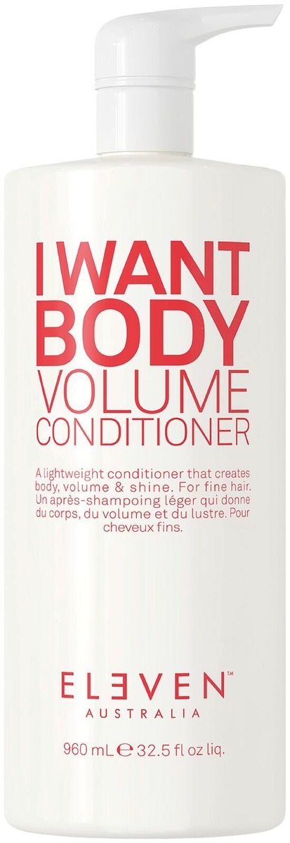 ELEVEN Australia I WANT BODY VOLUME CONDITIONER on kevyt hoitoaine, joka antaa runsasta volyymia, käsiteltävyyttä ja kiiltoa hennoille hiuksille. Hoitoaineen sisältämät hydrolysoitu kvinoa ja hydrolysoitu soijaproteiini vahvistavat hiuksia samalla kun avokadoöljy kosteuttaa niitä tehokkaasti. Papaijauute antaa hiuksille volyymia ja upean kiillon. Lopputuloksena ilmavat, tuuheat ja kauniin kiiltävät hiukset. Virkistävä limen ja basilikateen tuoksu!