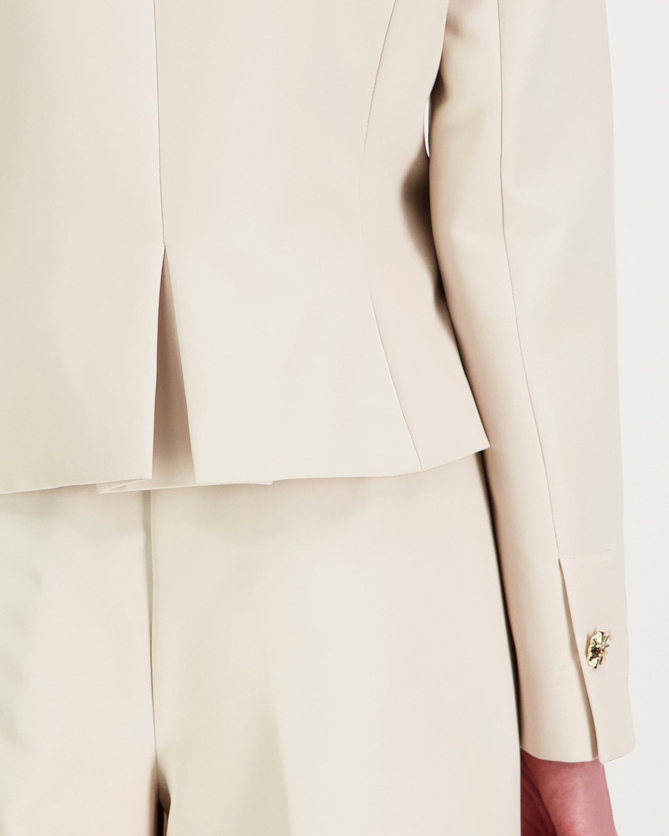 Bruuns Bazaar RubySus Acelia bleiseri on yksinkertainen ja tyylikäs vaatekaapin klassikko. Kaunis ja lyhyempi malli sopii loistavasti leveiden lahkeiden kanssa tai vaikka mekon päälle. Helppo istuvuus, ja kauniit yksityiskohdat. Pue arkeen farkkujen kanssa ja juhlaan saman sarjan housun tai hameen kanssa. Materiaali on helppohoitoinen ja laskeutuva, ja siinä on mukavasti elastaania tuomassa mukavuutta.