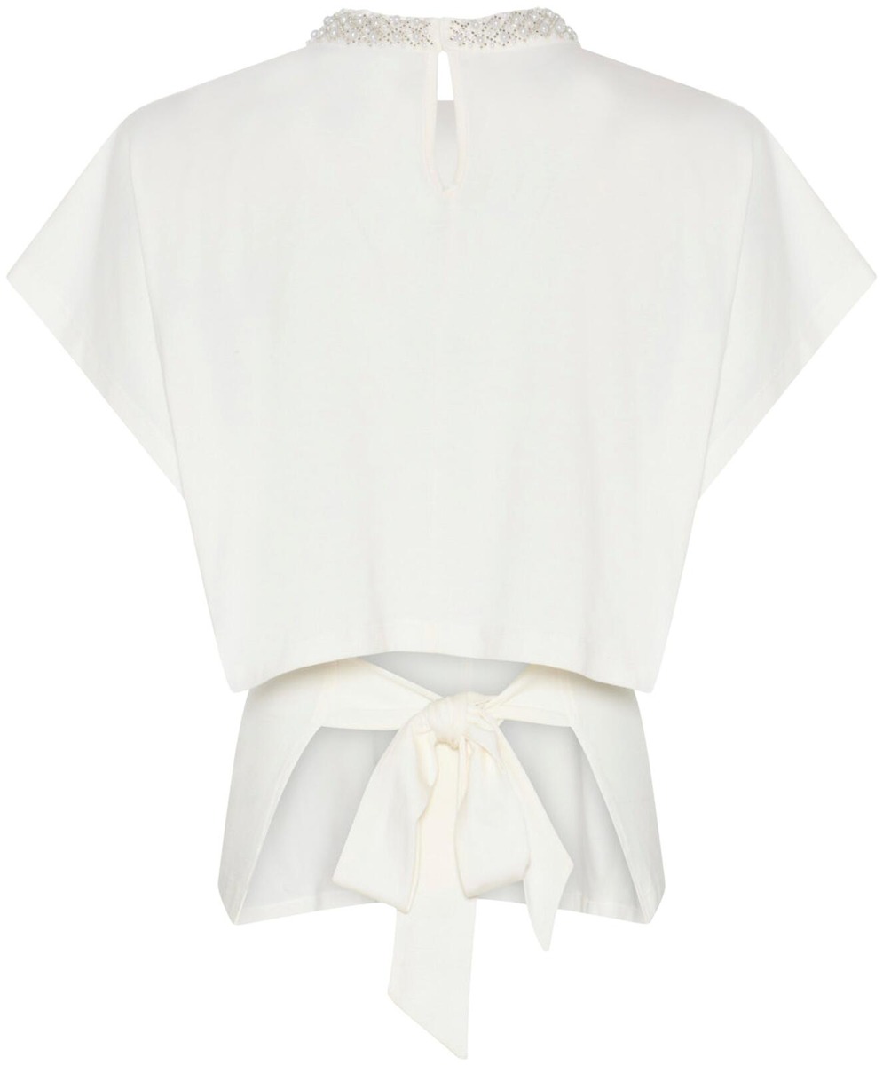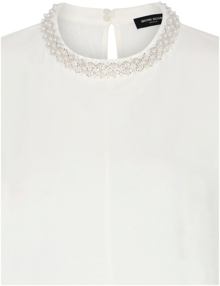 Bruuns Bazaar Alnus Verena toppi on upea vaihtoehto juhlaan ja arkeen. Trikoinen t-paita jossa on todella kaunis helmikoristelu pääntien ympärillä, ja selässä solmittavat nauhat joilla voi säädellä mallin istuvuutta. Sopii upeasti housujen ja hameiden kanssa, sekä bleiserin alle. Materiaali on miellyttävää joustavaa trikoota.