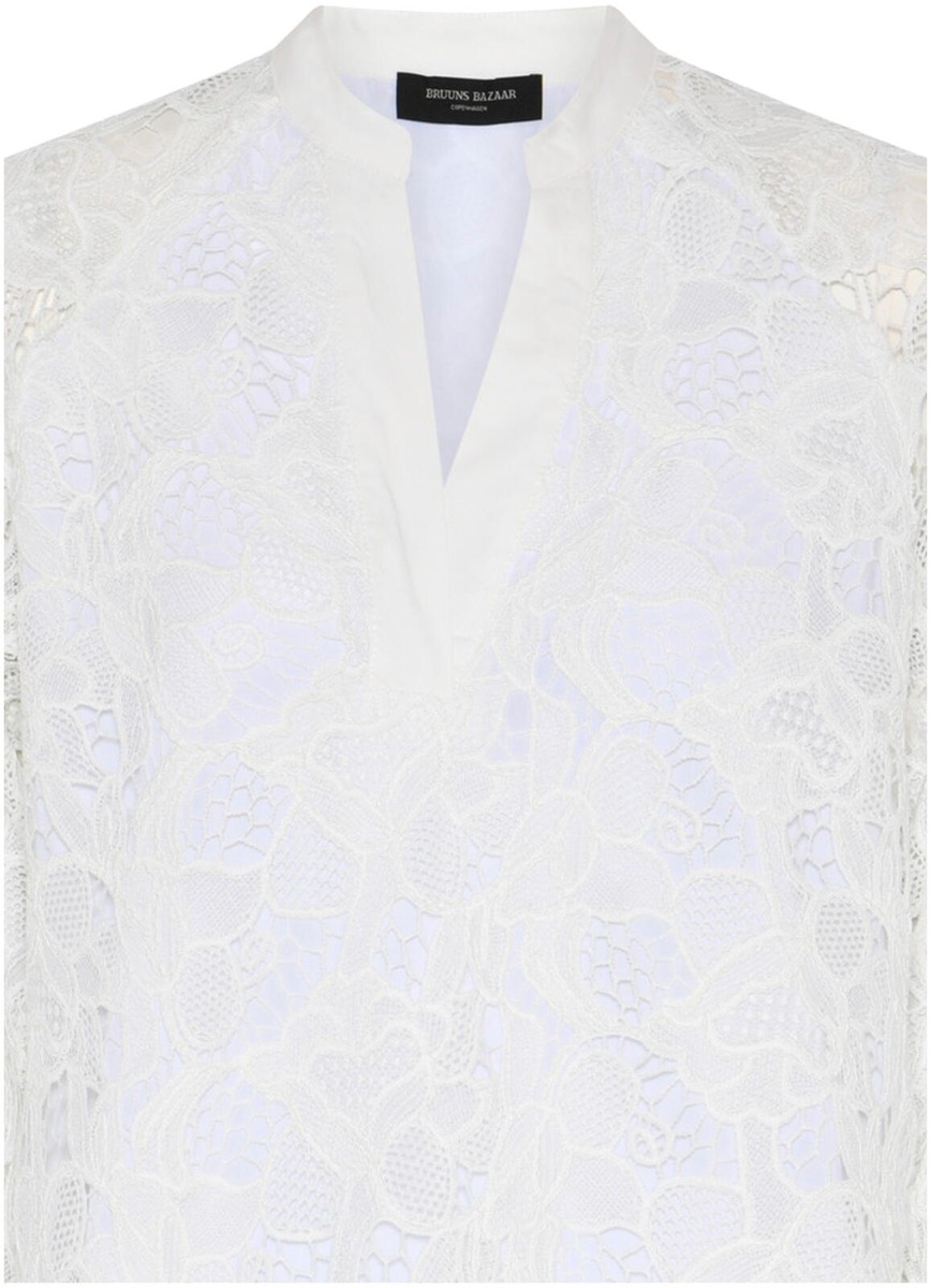 Bruuns Bazaar Geonoma Wandesa pitsimekko on ajaton ja klassinen valinta kestävään vaatekaappiin. Malli on suoralinjainen ja väljä mitoitukseltaa, ja sopii useimmille vartalotyypeille. Mekossa on kauniit alaspäin levenevät hihat ja helma ulottuu polveen saakka. Kaunis V-pääntie. Mekko sopii hyvin sekä arkeen ja juhlaan, kenkiä ja asusteita vaihtelemalla.