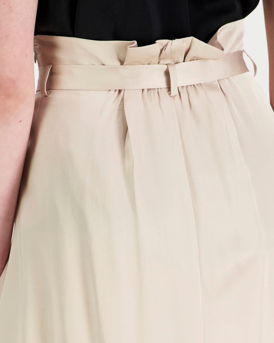 Bruuns Bazaar Weckia Surina hame on monikäyttöinen ja naisellinen. Sen vyötärö on kauniisti laskostettu ja siinä on vyö. Helma ulottuu melkein nilkkoihin, ja helma on suora. Selkäpuolella on yötäröllä kuminauha, joka lisää hameen istuvuutta.