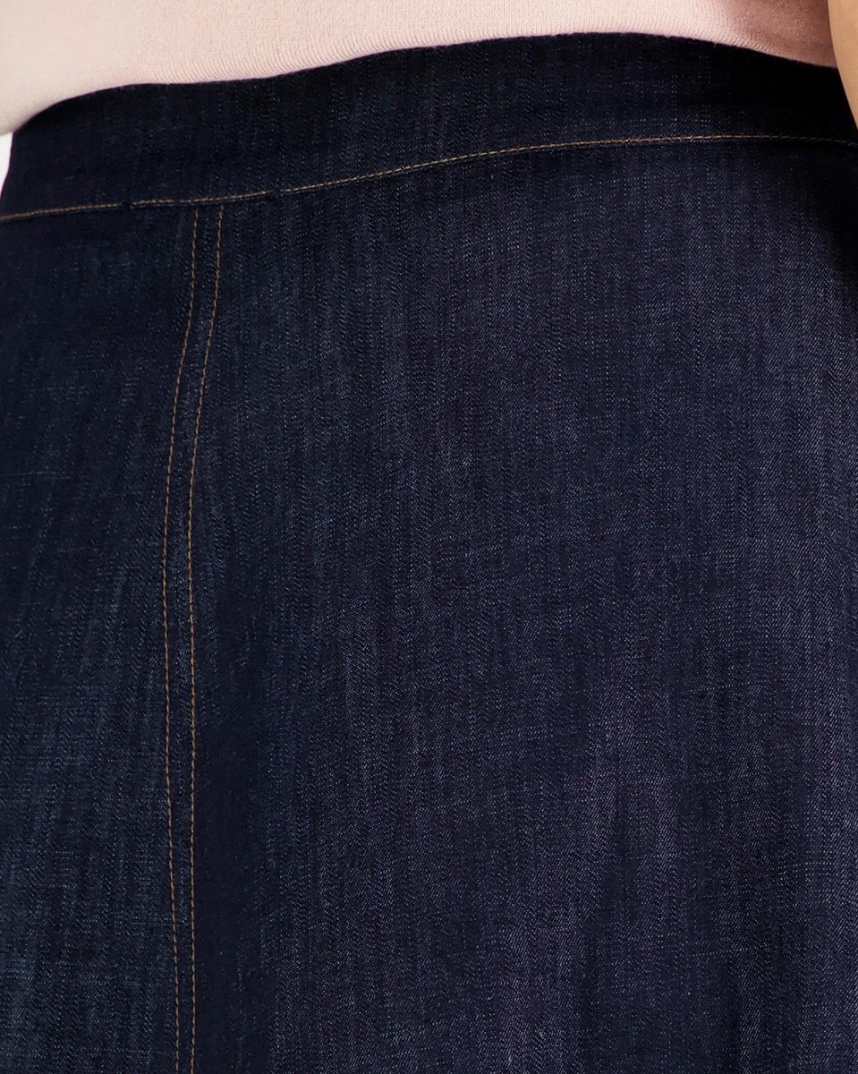 Bruuns Bazaar Chambra Imma hame on klassinen A-linjainen malli- tällä kertaa upeasta denim materiaalista. Hame on täydellinen arjen pelaastaja. Yhdistele neuleiden tai paitapuseroiden kanssa. Pituus on juuri polven alapuolelle. Vyötärökaistaleessa on vyön lenkit, ja sivulla vetoketju.
