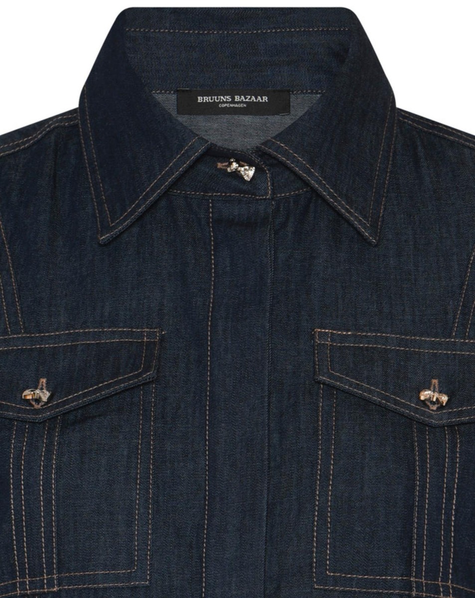 Bruuns Bazaar Chambra Glorita jakku on kevyttä puuvillaista denim kangasta. Malli on yksinkertainen ja helma ulottuu vyötärölle. Yhdistele hameiden ja housujen kaveriksi, tai mekkojen päälle. Kauniit rusetti-napit viimeistelvät ilmeen ja tuovat ripauksen naisellisuutta.