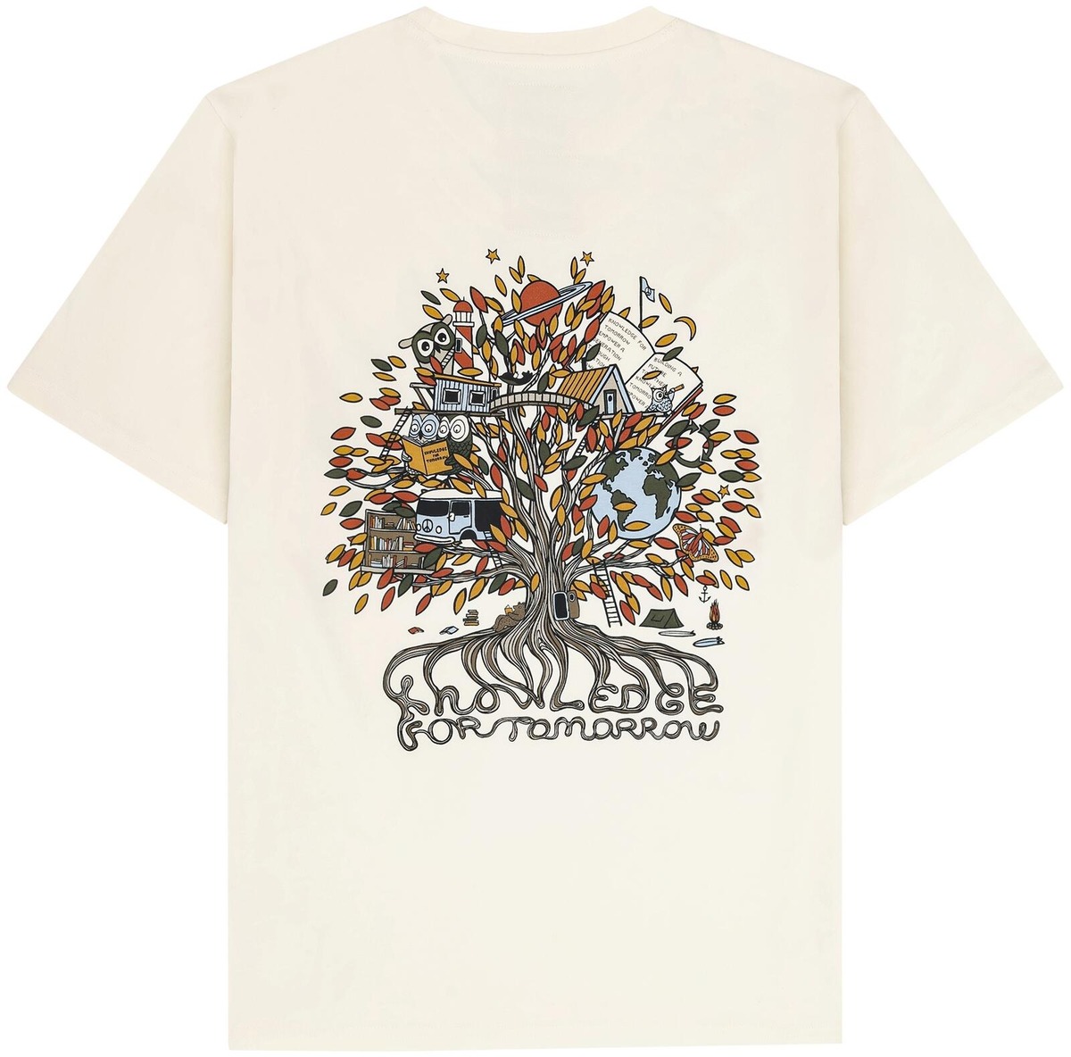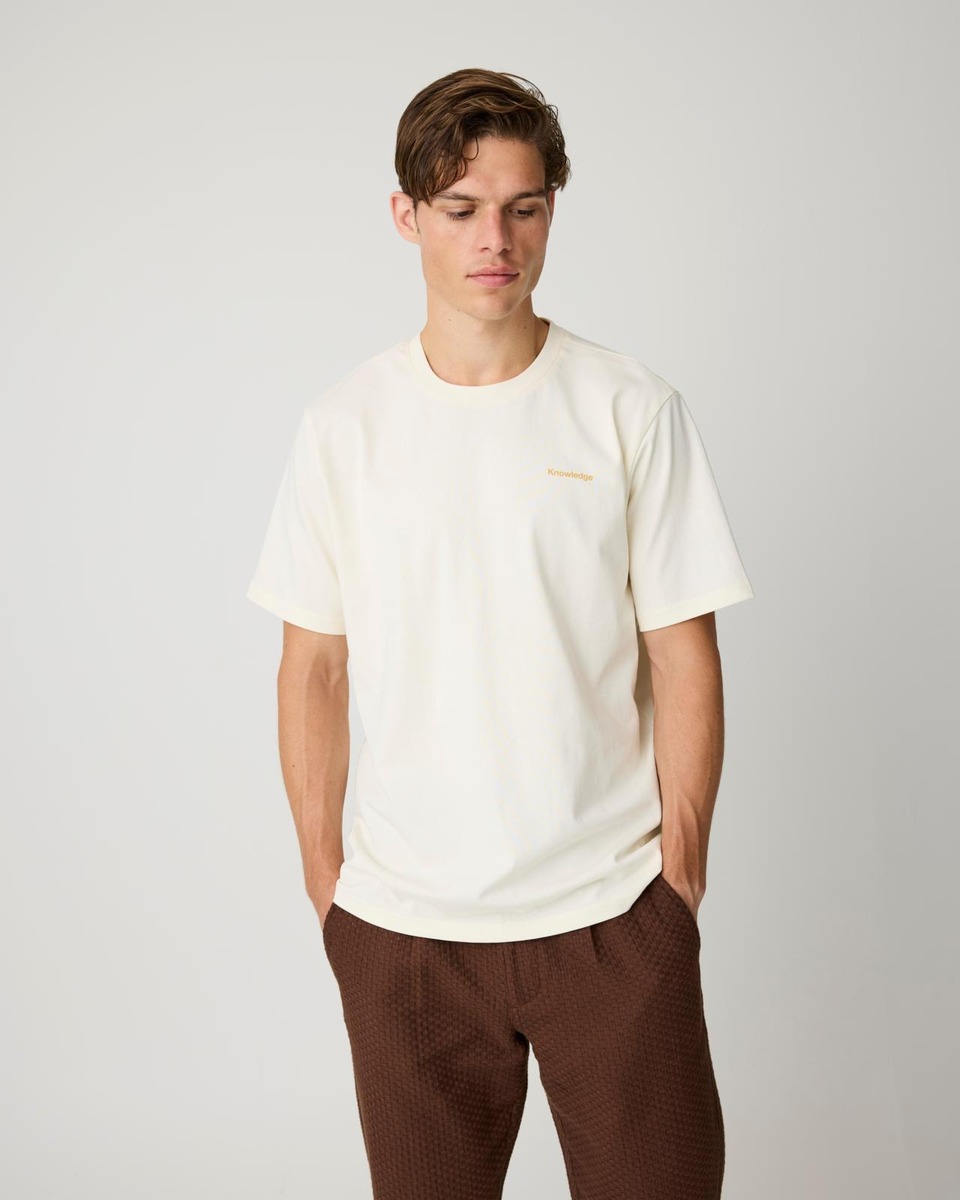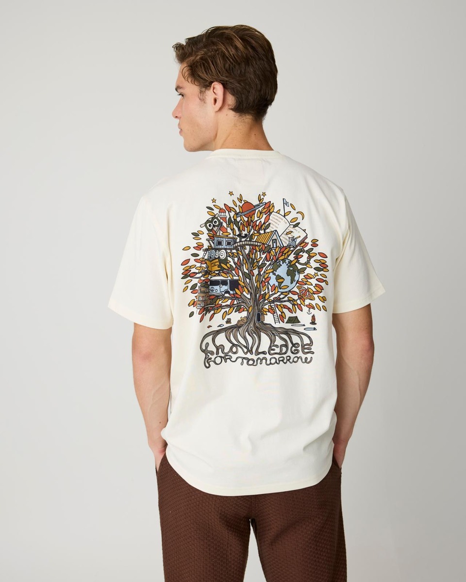 Knowledge Cotton Apparel M.t-paita Back print t-shirt on valmistettu puuvillasta, tarjoten rentoa istuvuutta ja mukavuutta koko päivän. T-paidan etupuolella on hienovarainen brodeerattu logo, kun taas selkää koristaa yksityiskohtainen puuillustratio, jossa on symbolisia elementtejä ja viesti "Knowledge for Tomorrow." Pehmeä ja hengittävä materiaali tekee siitä erinomaisen valinnan jokapäiväiseen käyttöön samalla kun se tekee vaikutuksen. Joustava kaulus ja laadukas ompelu varmistavat pitkäkestoisen kestävyyden, tehden siitä näyttävän osan jokaista rentoa vaatekaappia.