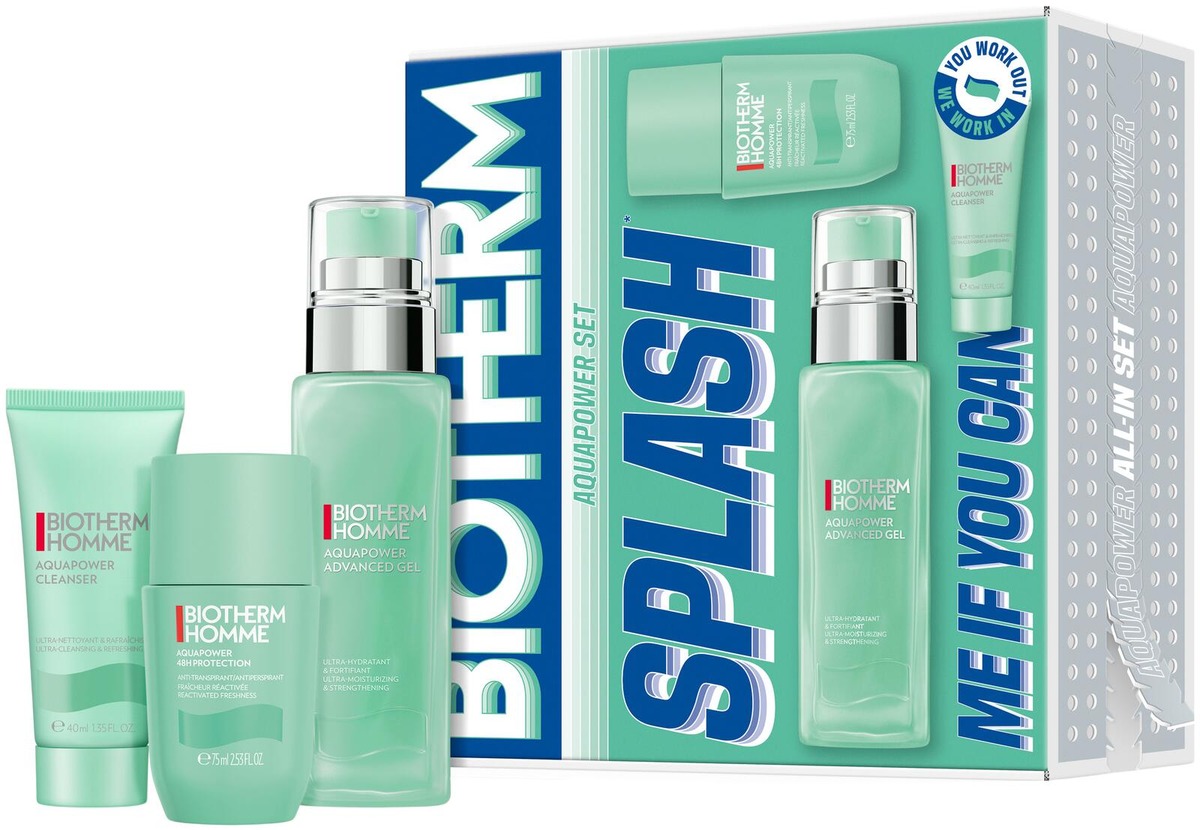 Hemmottele ihoasi Biotherm Aquapower Set 2026 -tuotteilla, dynaamisella triolla, joka on erityisesti suunniteltu miehille, jotka etsivät kosteutusta, puhdistusta ja pitkäkestoista raikkautta. Setti sisältää Aquapower Advanced Gel 75ml, Aquapower Cleanser 40ml ja Biotherm Aquapower Deo Roll-on 75ml. - AQUAPOWER ADVANCED GEL 75ML: Biotherm Homme Aquapower Advanced Gel on kosteuttava päivävoide miehille. Sisältää Biothermin patentoitua Life Plankton -uutetta Ranskan lähteistä, joka tunnetaan rauhoittavista ominaisuuksistaan. Aquapower on kohdistettua kosteutusta miehille, joka sammuttaa ihon janon välittömästi ja vahvistaa ihon luonnollista suojaa. - AQUAPOWER CLEANSER 40ML: Biotherm Homme Aquapower Cleanser 40 ml on kosteuttava kasvojenpuhdistusaine miehille. Puhdistaa ihon tehokkaasti ja tekee siitä pehmeän ja valmiin seuraavaan parranajoon/voiteeseen. Sopii päivittäiseen käyttöön. - AQUAPOWER DEO ROLL ON 75ML: Pysy raikkaana aamusta iltaan Biotherm Aquapower Deo Roll on -deodorantilla. Tämä tehokas deodorantti antaa 24 tunnin antiperspiranttisuojaa, joka pitää hien ja hajun poissa. Nopea, ei-tahmea koostumus on hellävarainen iholle mutta riittävän tehokas takaamaan pitkäkestoisen mukavuuden ja virkistävän raikkauden. Täydellinen aktiiviseen elämäntapaan.