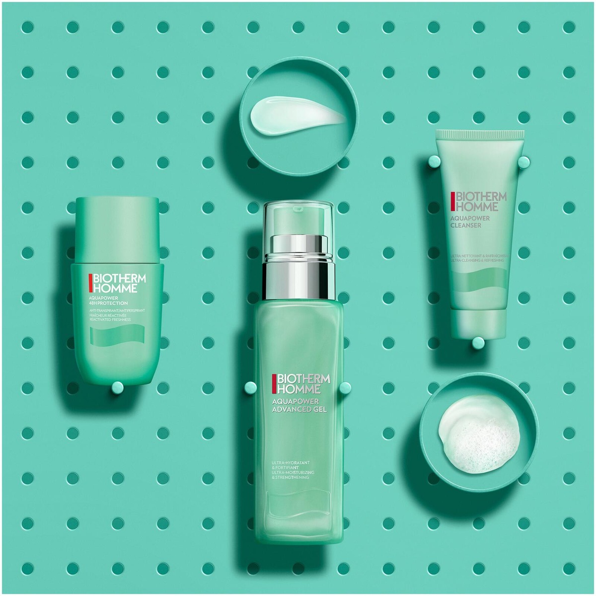 Puhdista: Aloita levittämällä pieni määrä Aquapower Cleanser -puhdistusgeeliä kosteille kasvoille, vaahdota huolellisesti ja huuhtele hyvin vedellä. Kosteuta: Puhdistuksen jälkeen levitä Aquapower Advanced Gel tasaisesti puhtaalle kasvojen ja kaulan iholle, hiero hellästi kunnes se on täysin imeytynyt intensiivisen ja pitkäkestoisen kosteutuksen saavuttamiseksi. Raikasta: Viimeistele levittämällä Biotherm Aquapower Deo Roll on puhtaille, kuiville kainaloille luotettavaa, koko päivän suojaa ja välitöntä raikkautta varten.