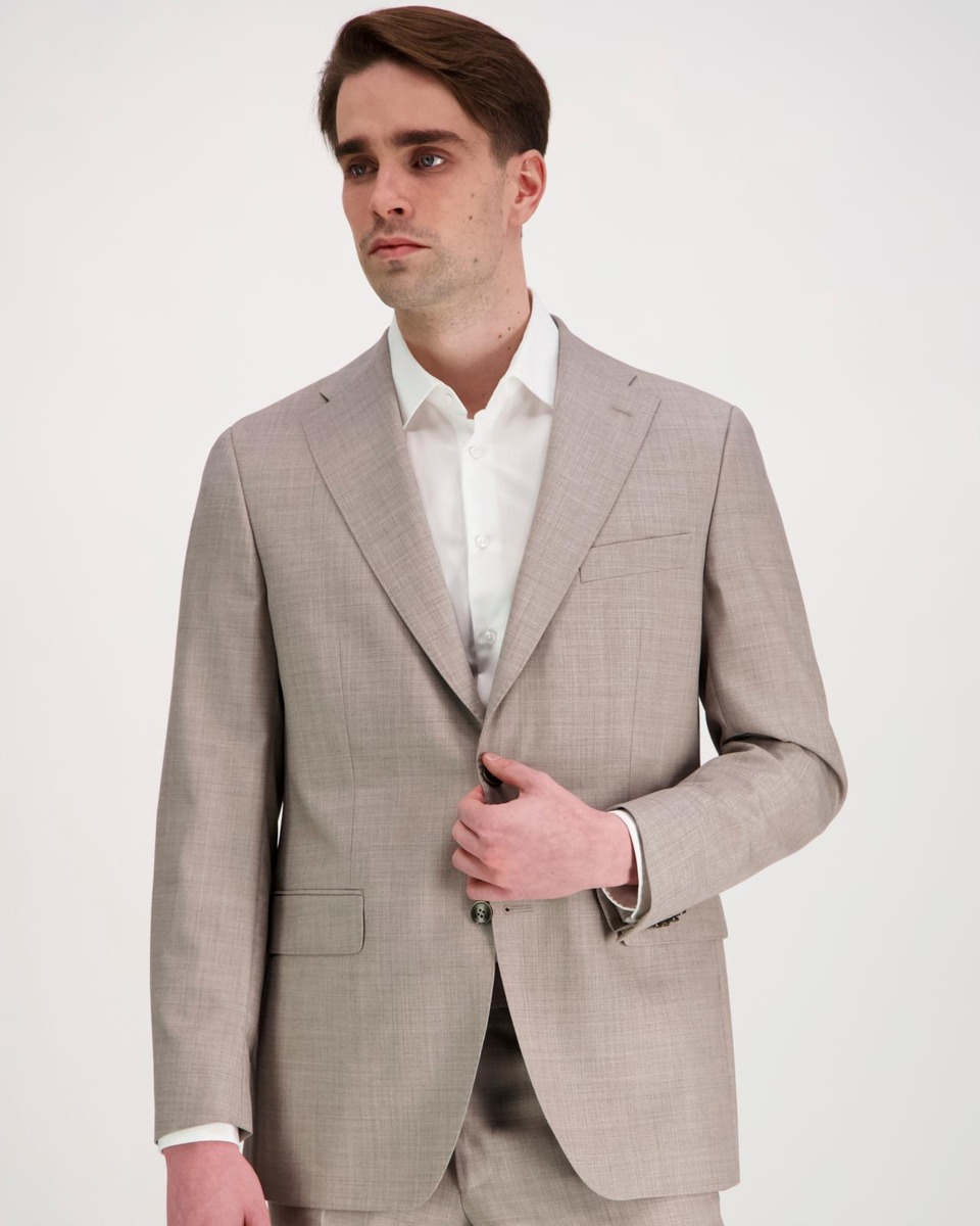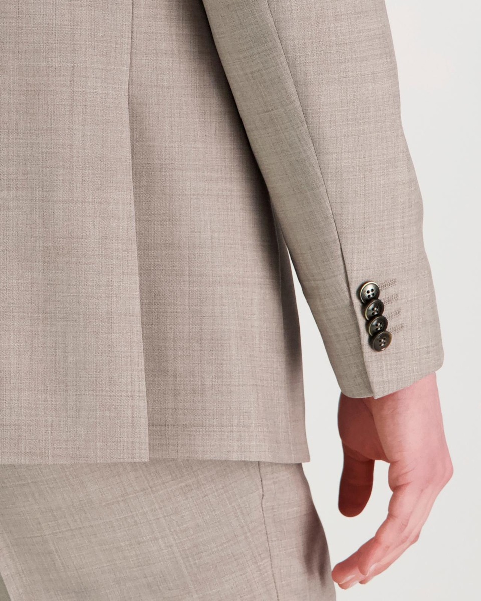 Upea kesäinen puvuntakki ylellisellä shamppanjanvärisellä Vitale Barberis Canonicon 110´s villakankaalla. Modern fit -istuvuus on klassisen ryhdikäs, mutta siihen on leikattu mukavasti väljyyttä. Vaalean beige sävy tuo arvokkuutta ja raikkautta kevään ja kesän tilaisuuksiin. Takin pituus koossa 52 on 76cm. Madrid 7570 -takkiin on yhdistettävissä Denver 7570 -housut ja Lucca 7575 -liivi.