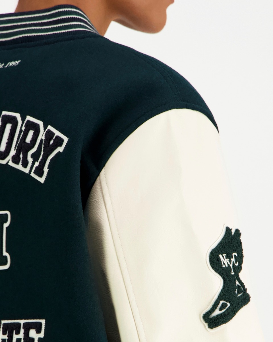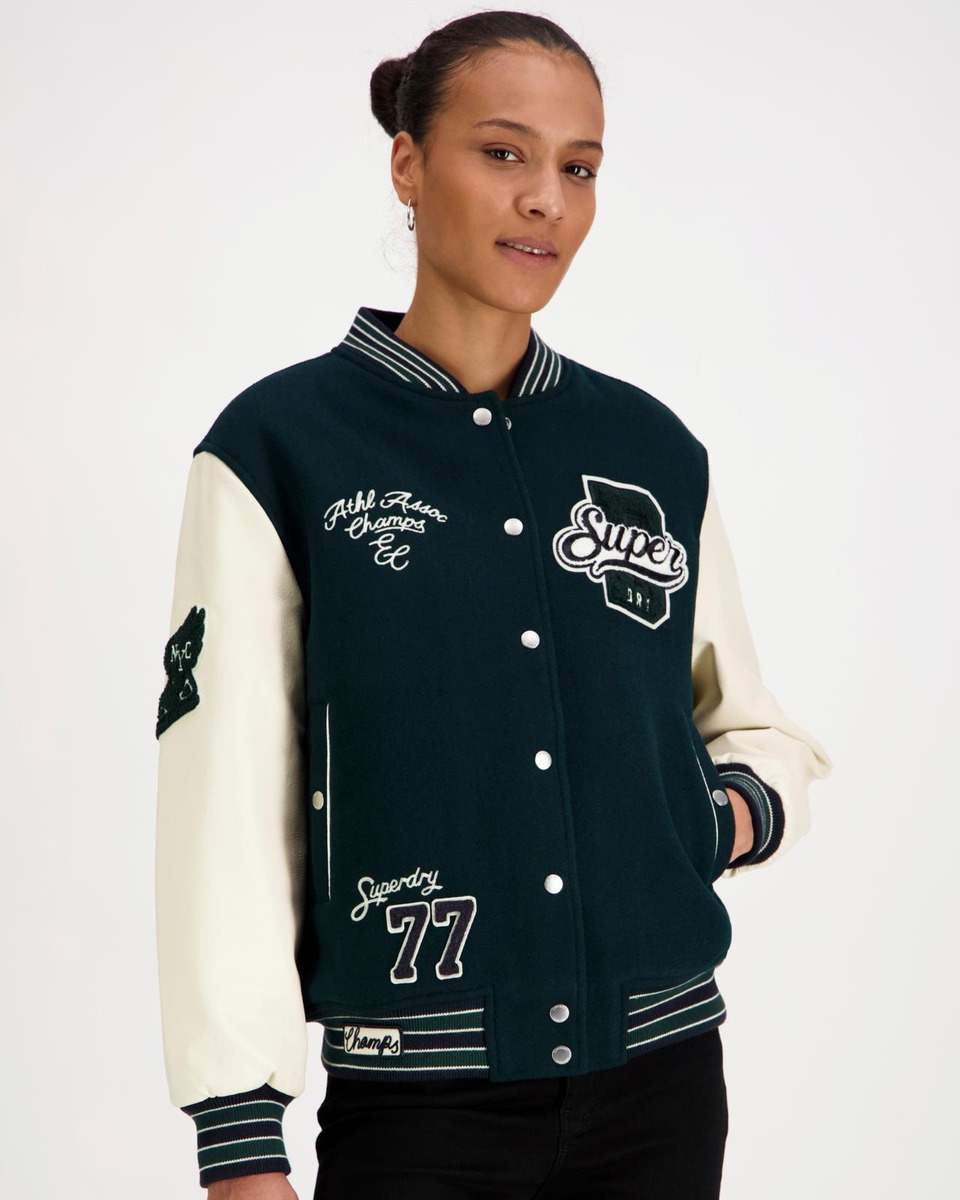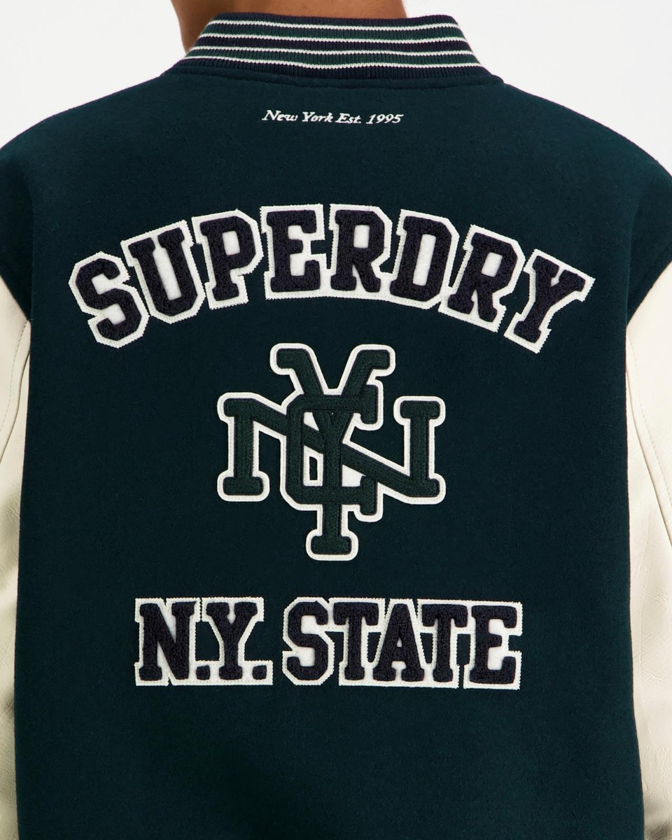 Huolellisesti valmistettu Vintage Patched Varsity -takki on kunnianosoitus ja rakkauskirje amerikkalaiselle yliopistourheilukulttuurille ja sen perinteille. Täydellisesti suunnitellut kirjaillut merkit kautta takin tuovat esiin 1900-luvun puolivälin amerikkalaisen yliopistotunnelman. Tämä tukeva ja luotettava vaatekappale sisältää tekonahkahihat, timanttitikkauksen sisäpuolella ja runsaasti villaa, varmistaen että tunnet aidon Superdry-laadun, jota olet oppinut odottamaan. Rento istuvuus – klassinen Superdry-mitoitu, ei liian kapea, ei liian väljä, juuri sopiva. Valitse tavallinen kokosi. Painonappikiinnitys, kaksi painonapillista etutaskua, tekonahkahihat, resorit hihansuissa, helmassa ja kauluksessa, timanttitikattu vuori, topatut hihat, sisätasku painonappikiinnityksellä, kirjailtuja ja applikoituja merkkejä, suuri kirjailu selässä. Hihat 100% polyesteri, vuori 100% polyesteri
