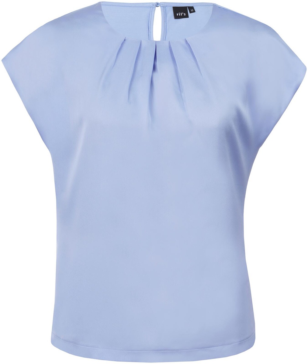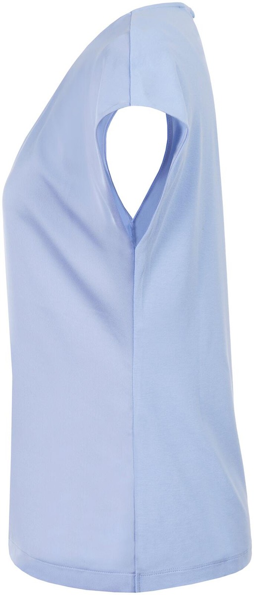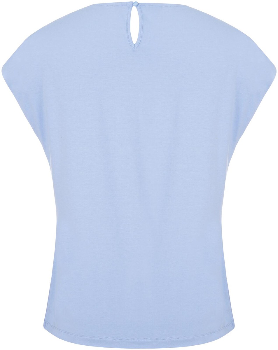 Hybriditopissa on pienet holkkihihat, pääntiessä näyttäviä laskosyksityiskohtia ja takana niskahalkiossa nappikiinnitys. Kiiltävä etuosa on kauniisti laskeutuvaa, kierrätettyä polyesterisatiinia. Takaosa on miellyttävän joustavaa viskoosielastaania. Takapituus on 60 cm koossa M.