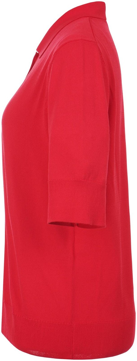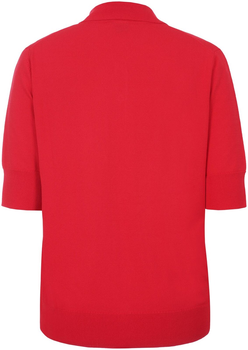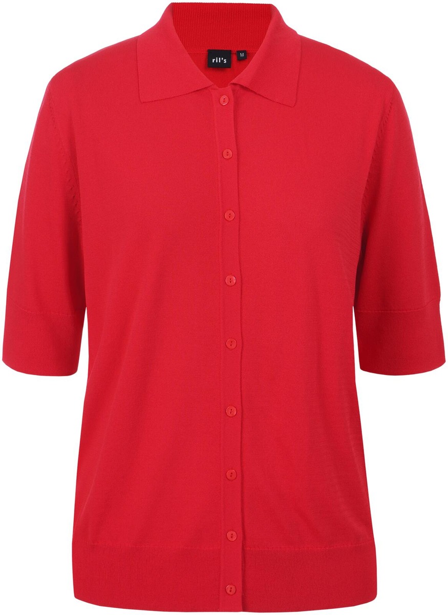 Sileäneuloksinen, ohut neulepaita paitakauluksella, puolipitkillä hihoilla ja täyspitkällä nappilistalla. Materiaalina on iholla viileäntuntuinen viskoosi-polyamidisekoite. Takapituus on 56 cm koossa M.