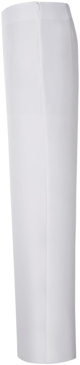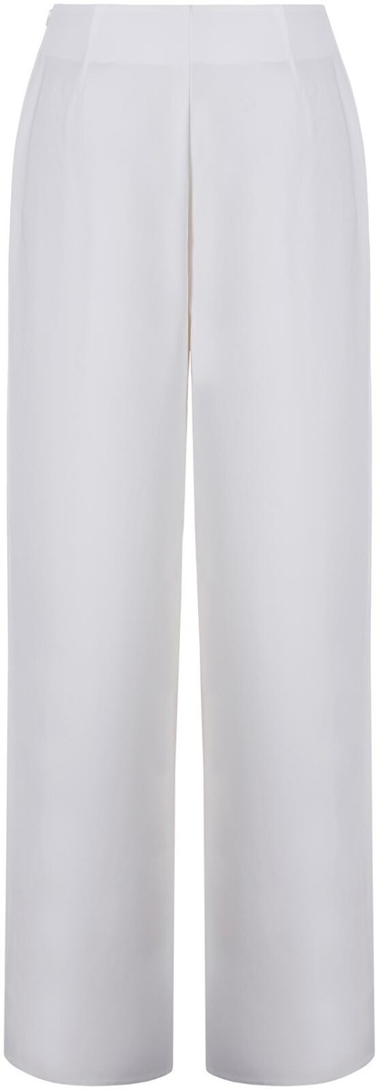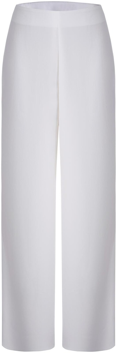 Hyvin laskeutuvat housut täyspitkin, levein lahkein. Housussa on normaali vyötärönkorkeus ja leveä vyötärökaistale, jossa piilovetoketjusulku sivusaumassa. Materiaalina on kreppimäinen ja mattapintainen asetaatti-polyesterisekoite. Lahkeen sisäpituus on 85 cm koossa 36.