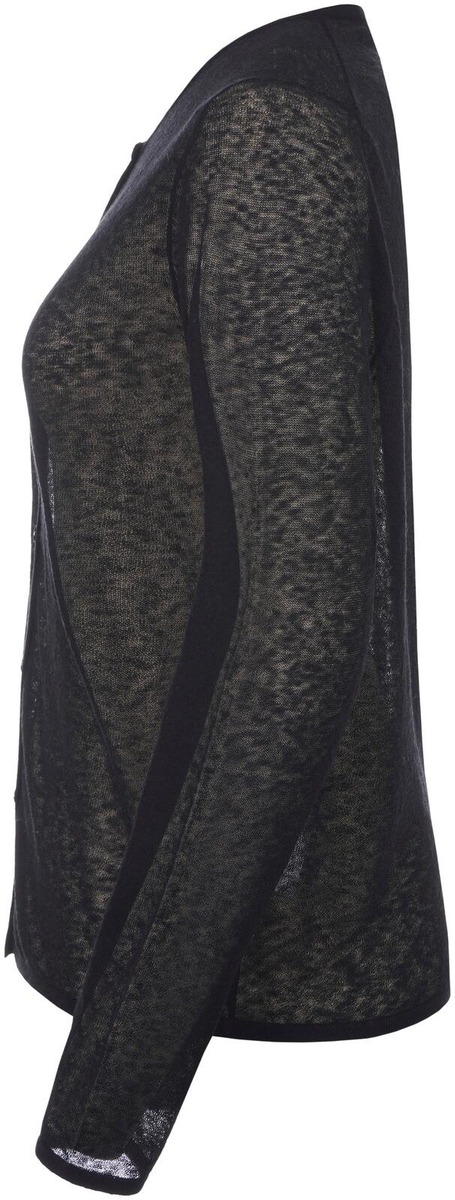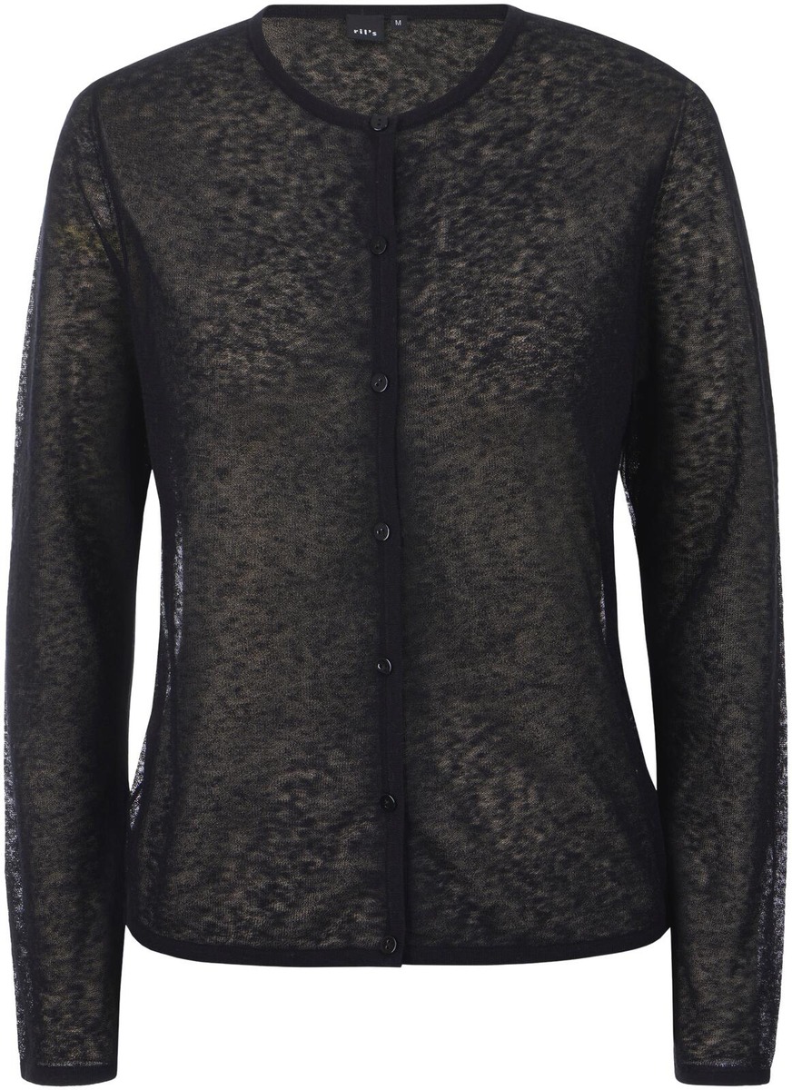 Läpikuultavan ohuessa neuletakissa on siro O pääntie, täyspitkät hihat sekä yksityiskohtana kauniit helmiäishohtoiset napit. Materiaalina on ihastuttava monikuitusekoite, joka sisältää mm puuvillaa ja pellavaa. Takapituus on 56 cm koossa M.