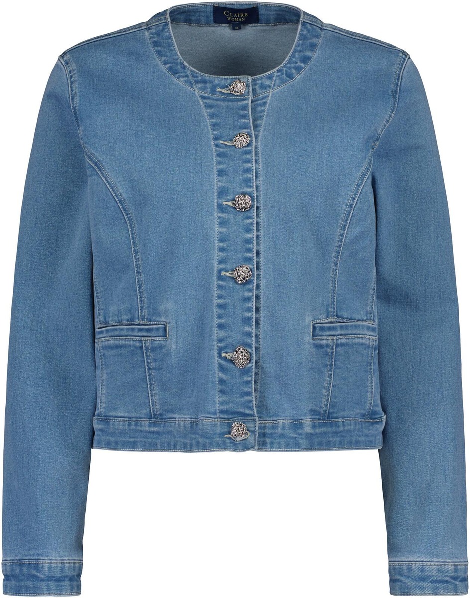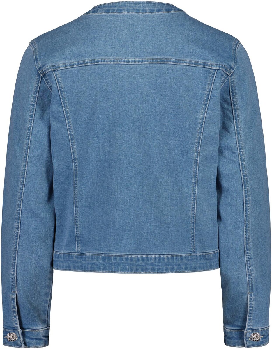 Denimjakku pyöreällä pääntiellä ja sirolla leikkauksella. Materiaalina pehmeä ja keveästi joustava denim. Edessä alahalla listataskut.Takissa on kauniina yksityiskohtana sirot koristenapit.