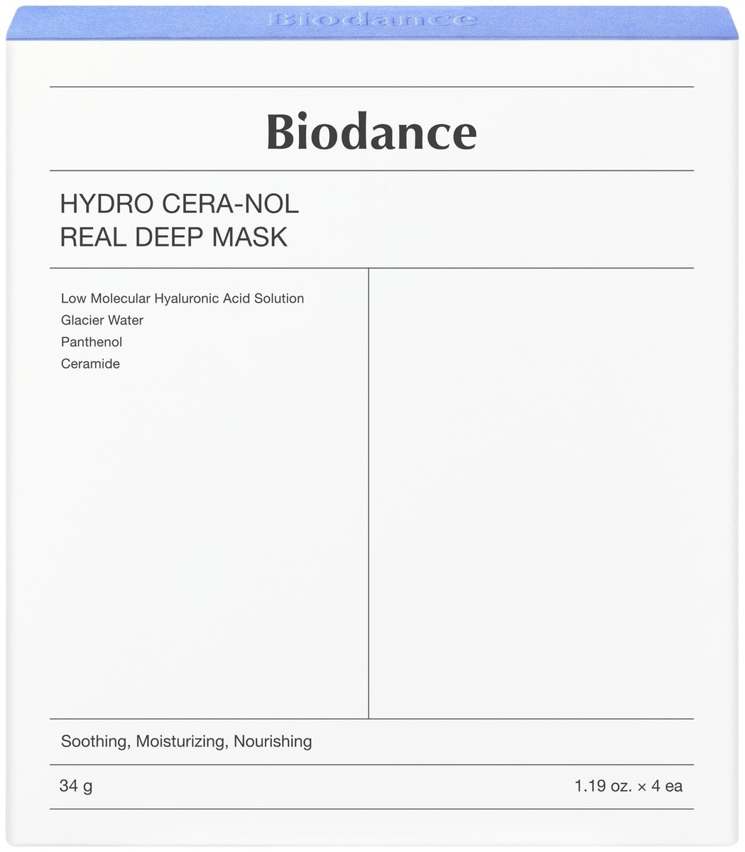 Biodance Hydro Cera-Nol Real Deep Mask on ihoa syväkosteuttava, rauhoittava sekä sen suojamuuria vahvistava kasvonaamio, joka tarjoaa ärtyneelle ja herkälle iholle myös viilentävän vaikutuksen. Naamio lukitsee kosteuden ihoon, saaden sen näyttämään naamion käytön jälkeen kuulaalta ja kosteutetulta. Vaalea hydrogeelinaamio muuttuu yön aikana läpikuultavaksi, jolloin sen sisältämät tehoaineet pääsevät imeytymään ihoon.