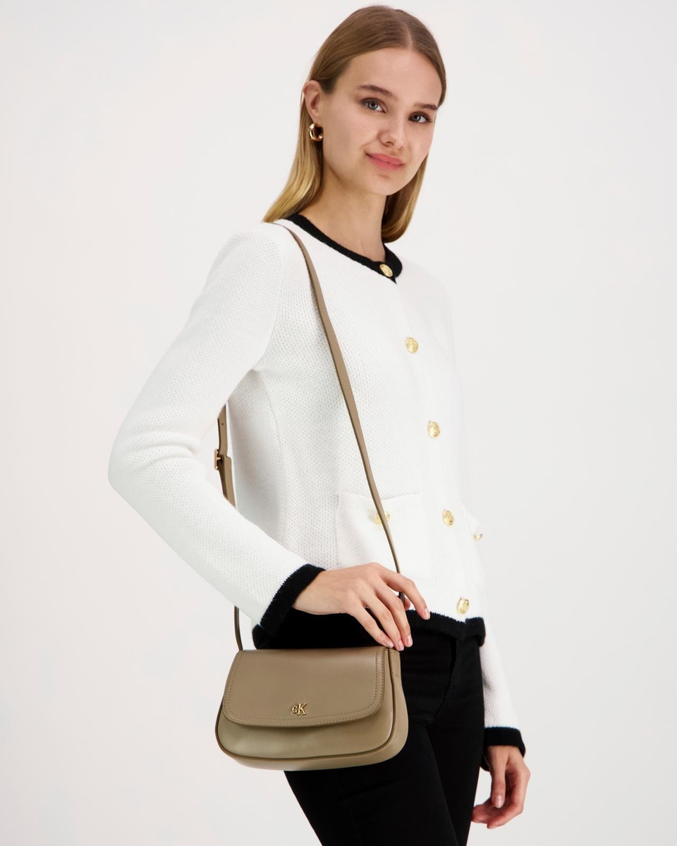 Lukollisen läpän alla avotasku ja korttitasku. Säädettävä olkahihna.